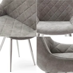 2er Set Esszimmerstühle Wildlederoptik GRAU Rautensteppung Edelstahl