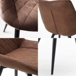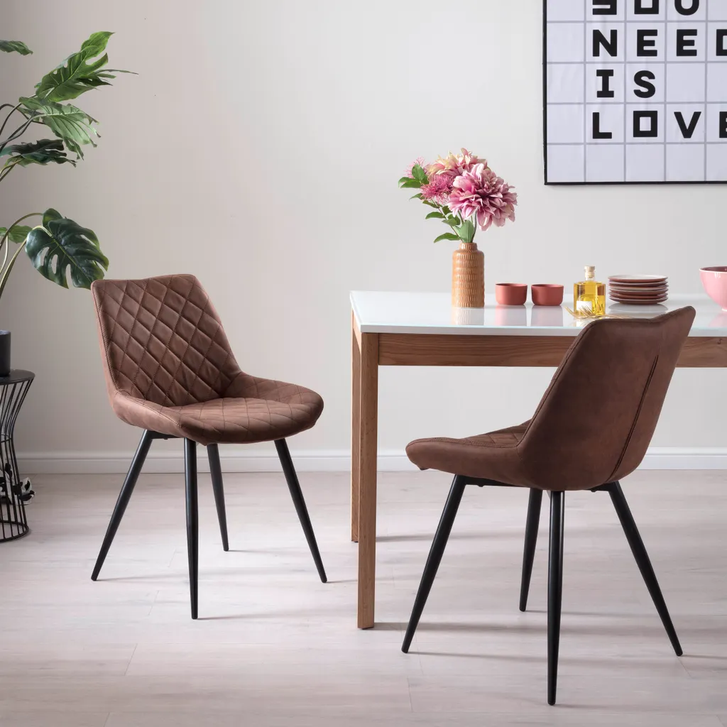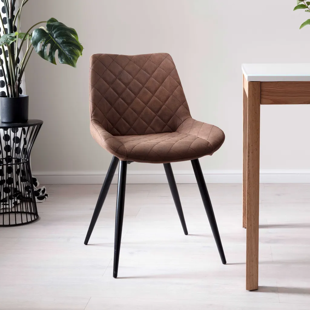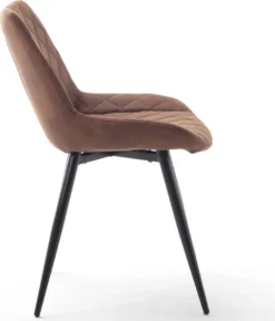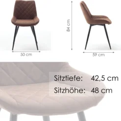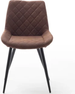 2er Set Esszimmerstühle Wildlederoptik DUNKELBRAUN Rautensteppung Metallfüße Schwarz