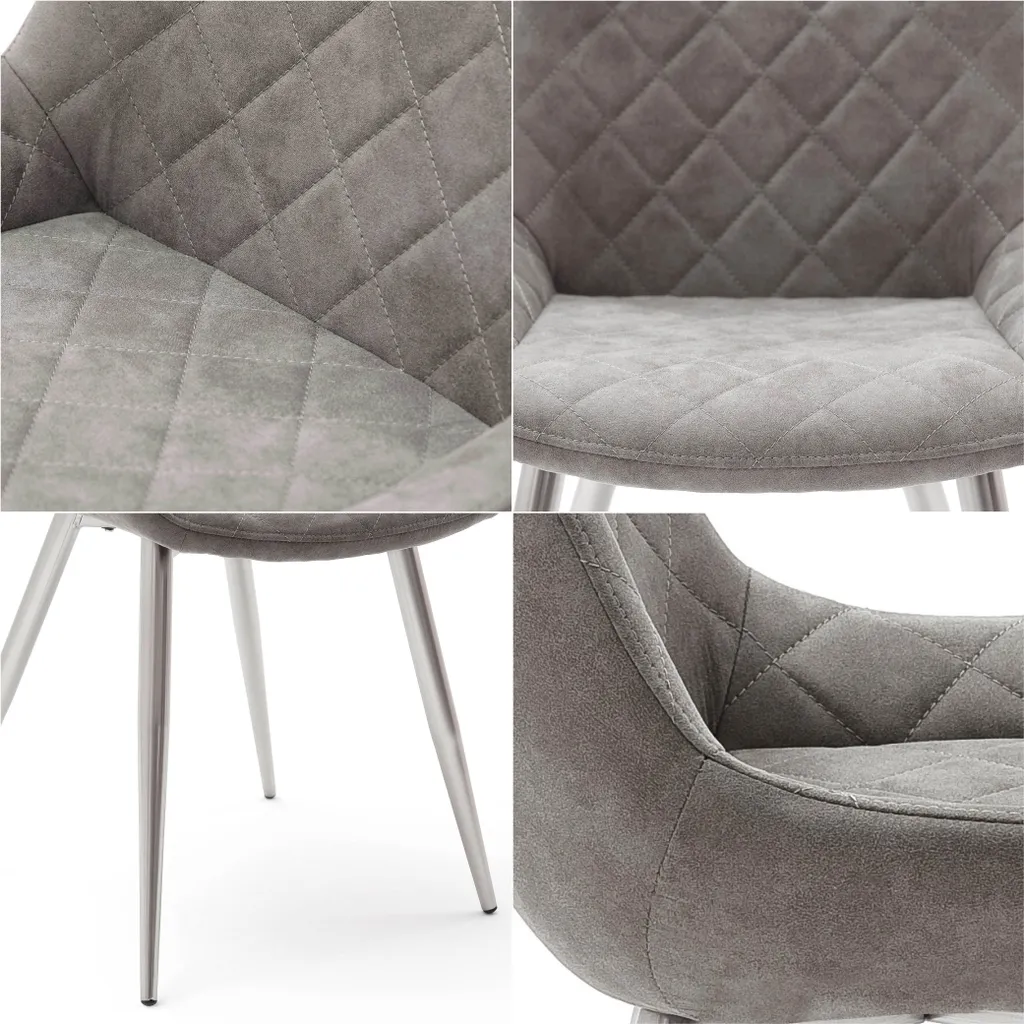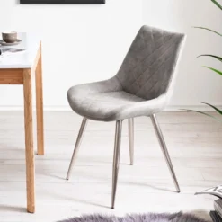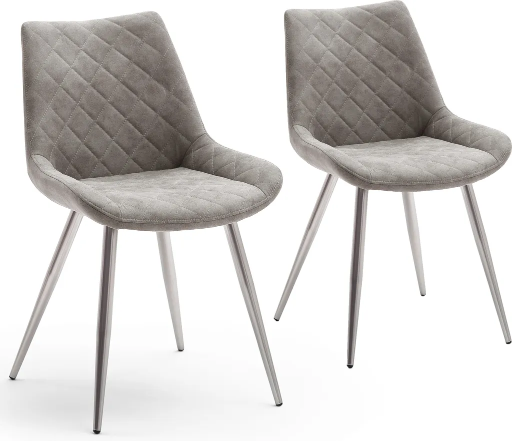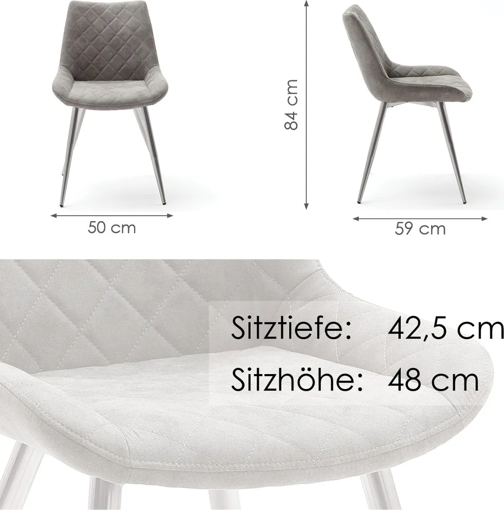 2er Set Esszimmerstühle Wildlederoptik GRAU Rautensteppung Edelstahl