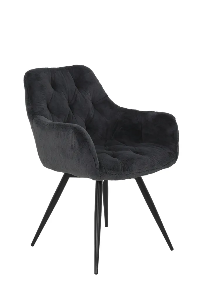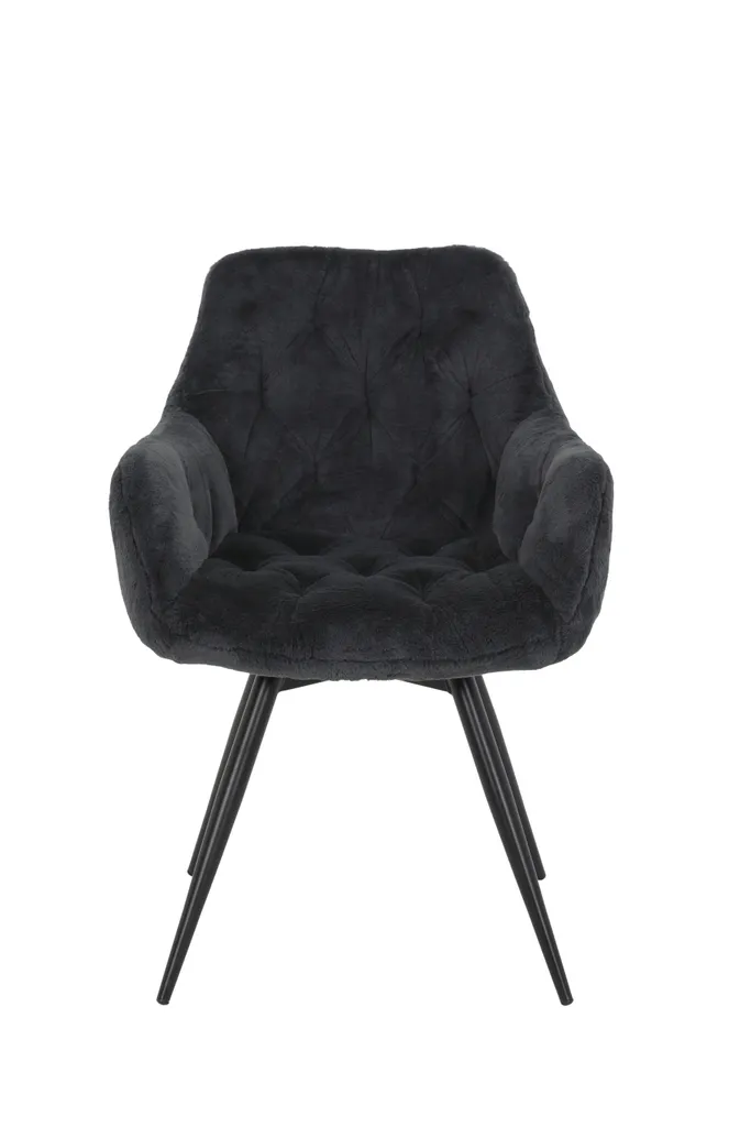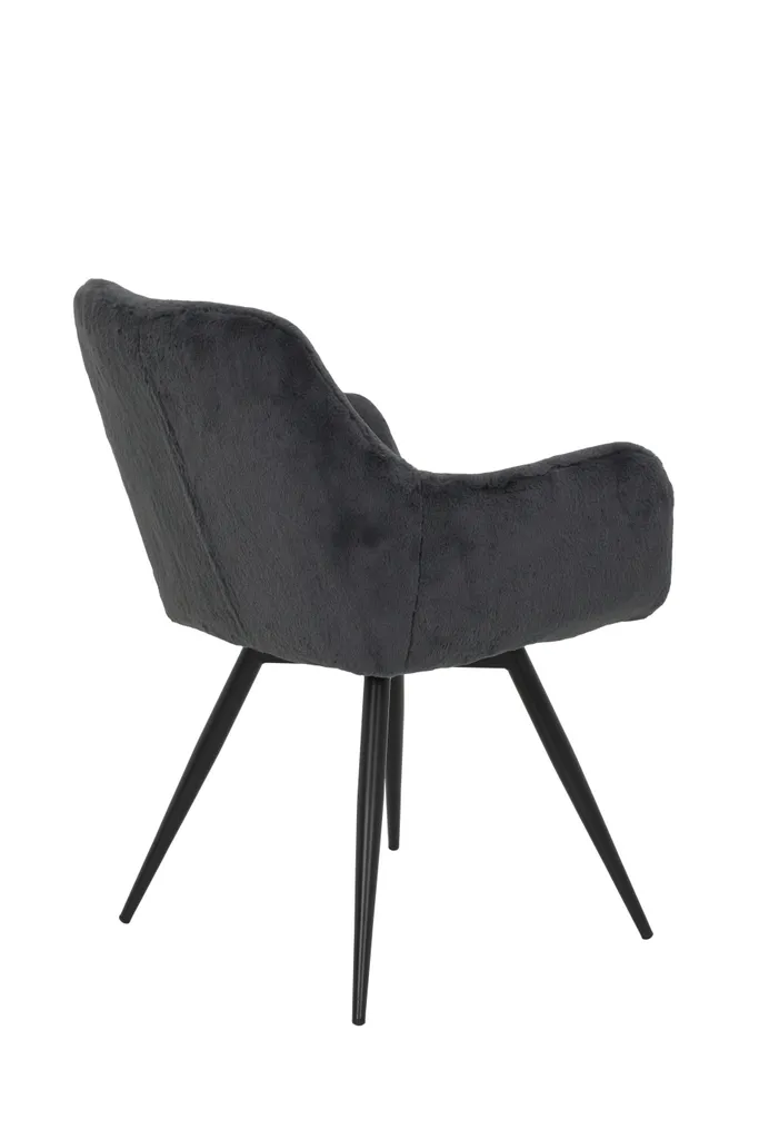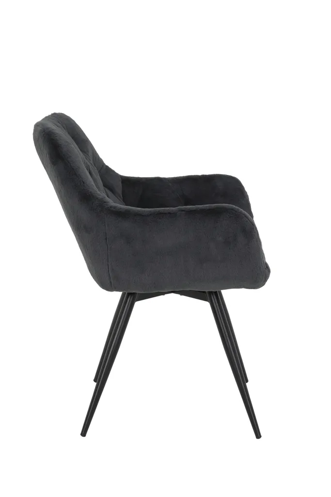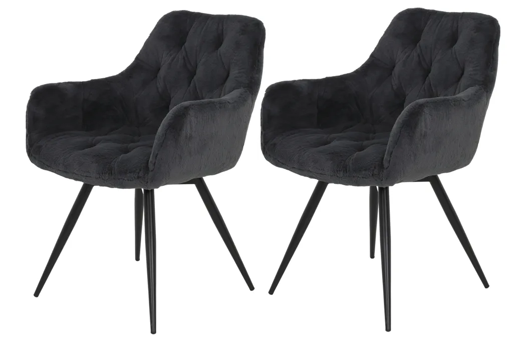 2er Set Esszimmerstuhl/Sessel Heidi – Microfaser Felloptik Anthrazit – Rundrohr Schwarz – 120kg Belastbar – 360° Drehbar