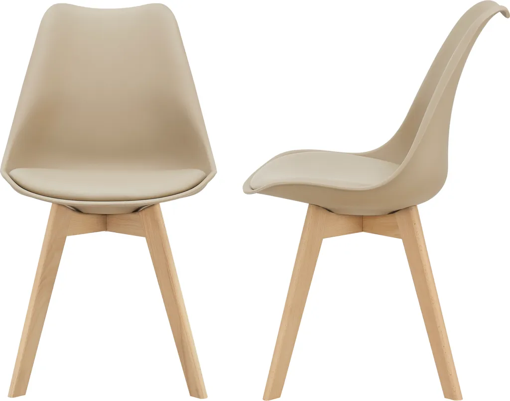 2x Design Stühle Esszimmerstuhl Beige PolyurethanKunstleder Stuhl Holzgestell [en.casa]