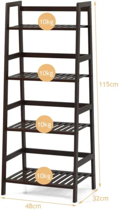 4 Etagen Leiterregal Aus Bambus, Standregal, Blumenregal, Pflantzenregal, Bücherregal Für Balkon & Arbeitszimmer&Wohnzimmer, 48x32x115cm (Braun)