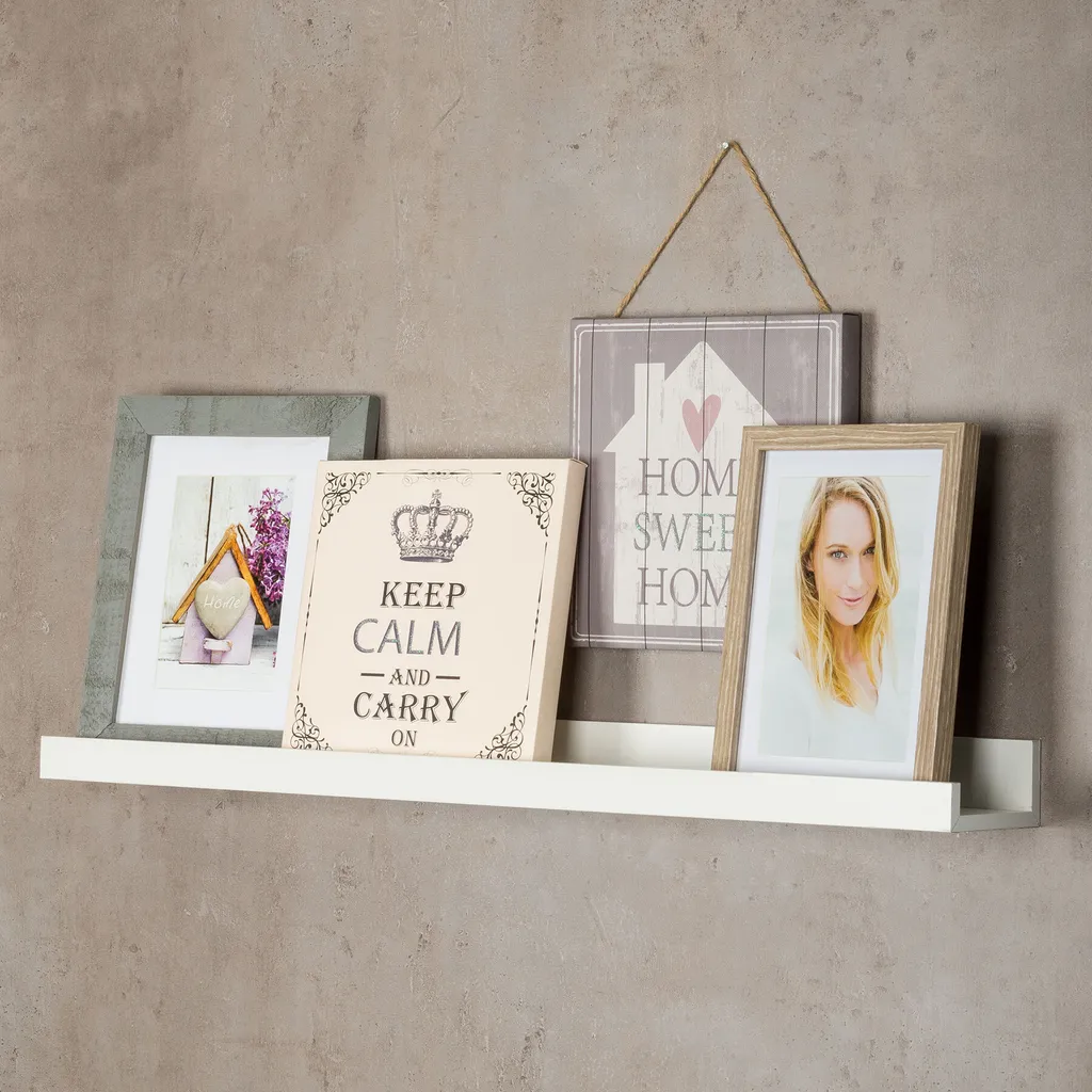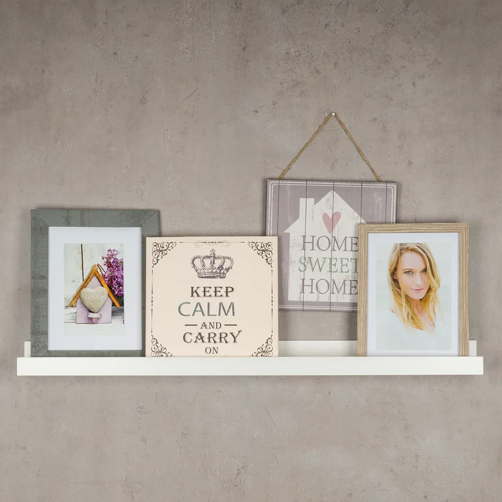 | Zusätzliche Varianten | Bilderleiste Weiß 70cm lang MDF Holz Bilderschiene Galerieschiene Wandregal, Bilderleiste Weiß 110cm lang MDF Holz Bilderschiene Galerieschiene Wandregal |