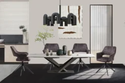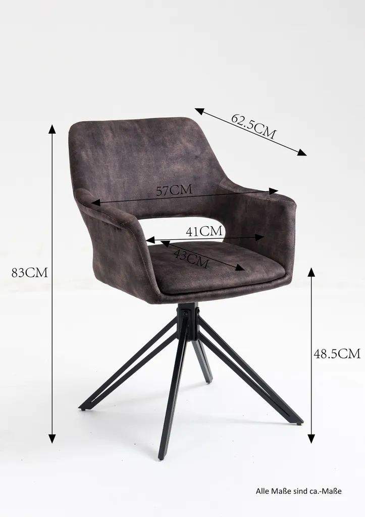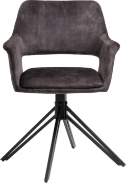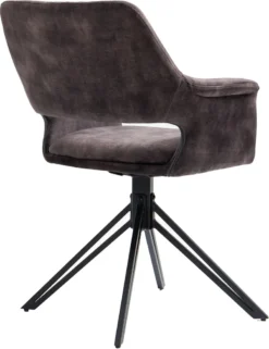 ByLIVING Esszimmerstuhl 2er Set Estelle / Vintage-Samt Anthrazit / Gestell Metall Schwarz / Sitzschale 360° Drehbar / Esszimmerstuhl / Wohnzimmerstuhl / B 57, H 84, T 61, Cm