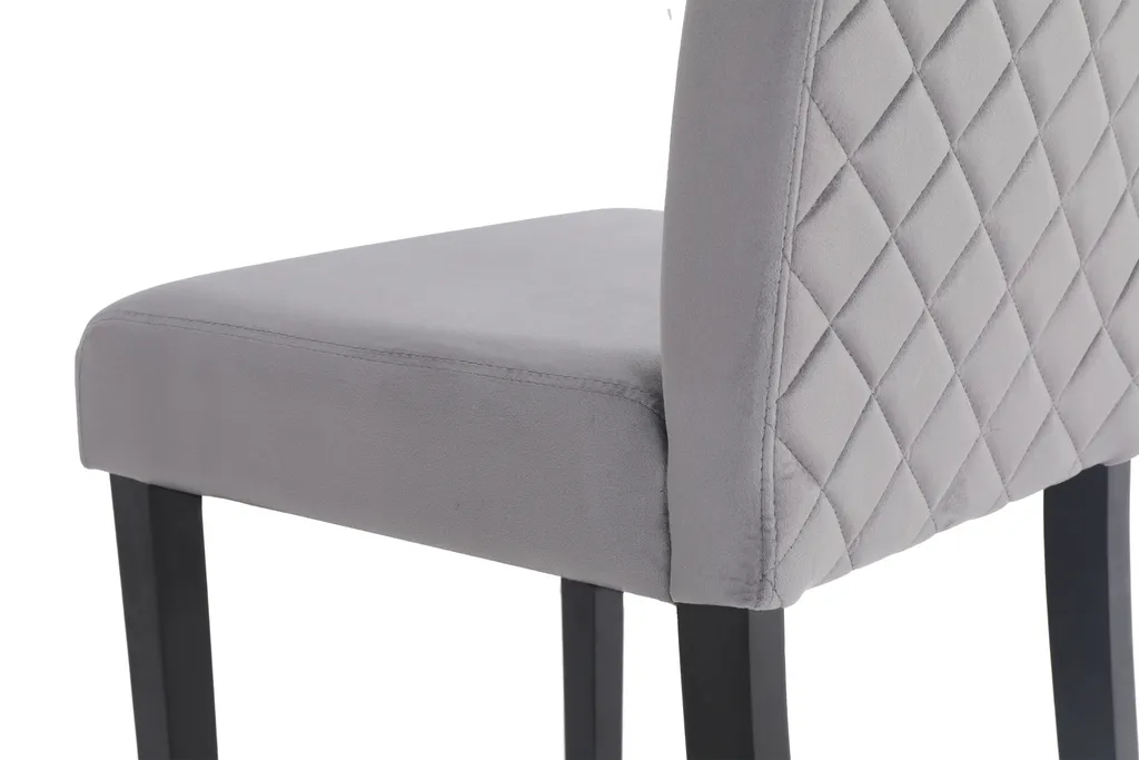 ByLIVING Esszimmerstuhl Silvio 2er-Set, Samt Bezug In Grau Mit Rautensteppung, Gestell Rubberwood Schwarz