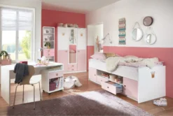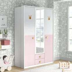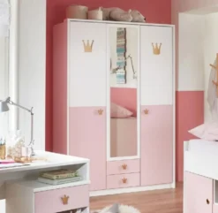 Cindy2 Kleiderschrank 3-türig Mit Spiegel Weiß / Rose