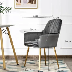 COSTWAY 2er Gepolsterte Esszimmerstühle,Samt Küchenstuhl Akzentsessel Mit Armlehnen & Rückenlehne,Polsterstuhl Wohnzimmerstuhl Mit Beinen In Goldoptik, Grau