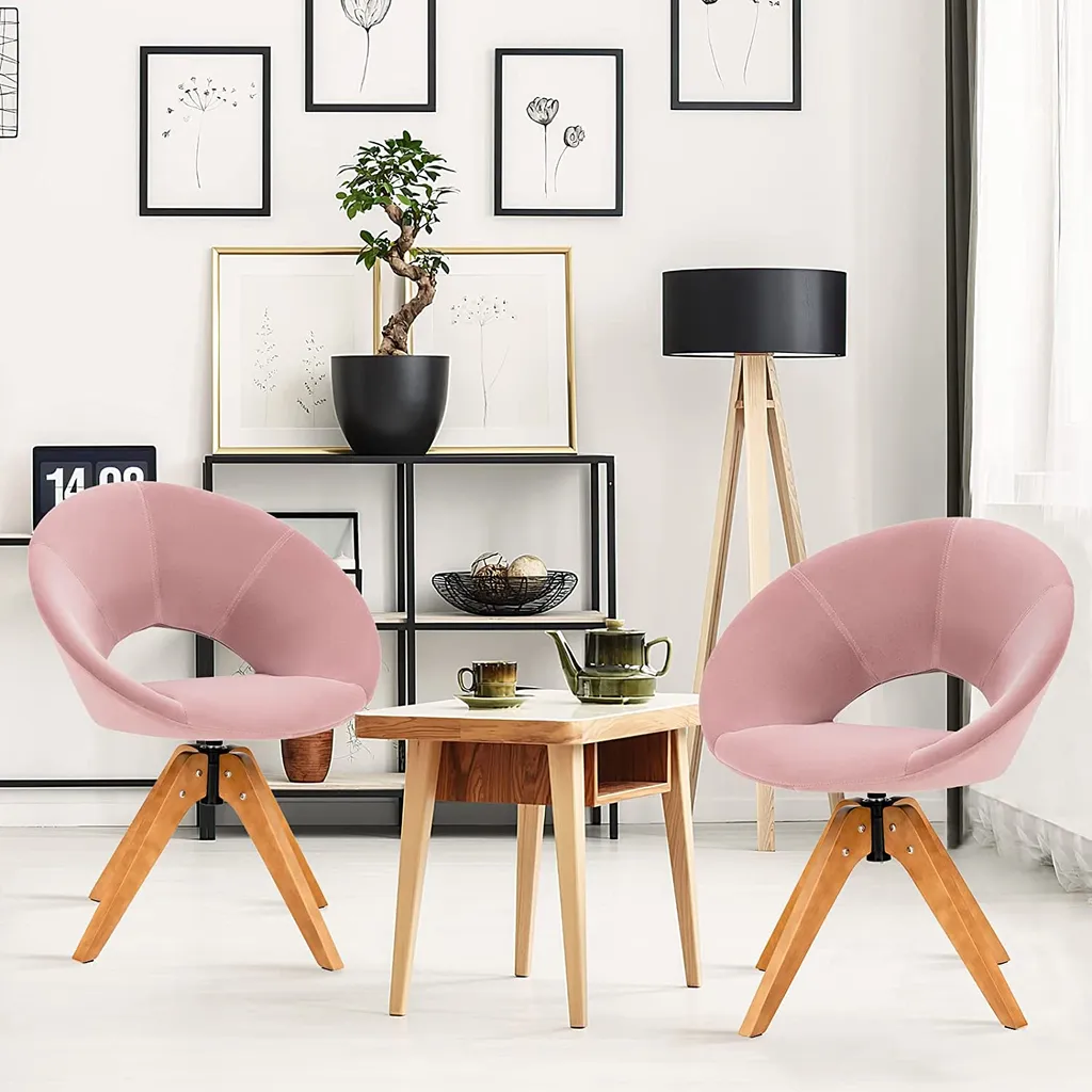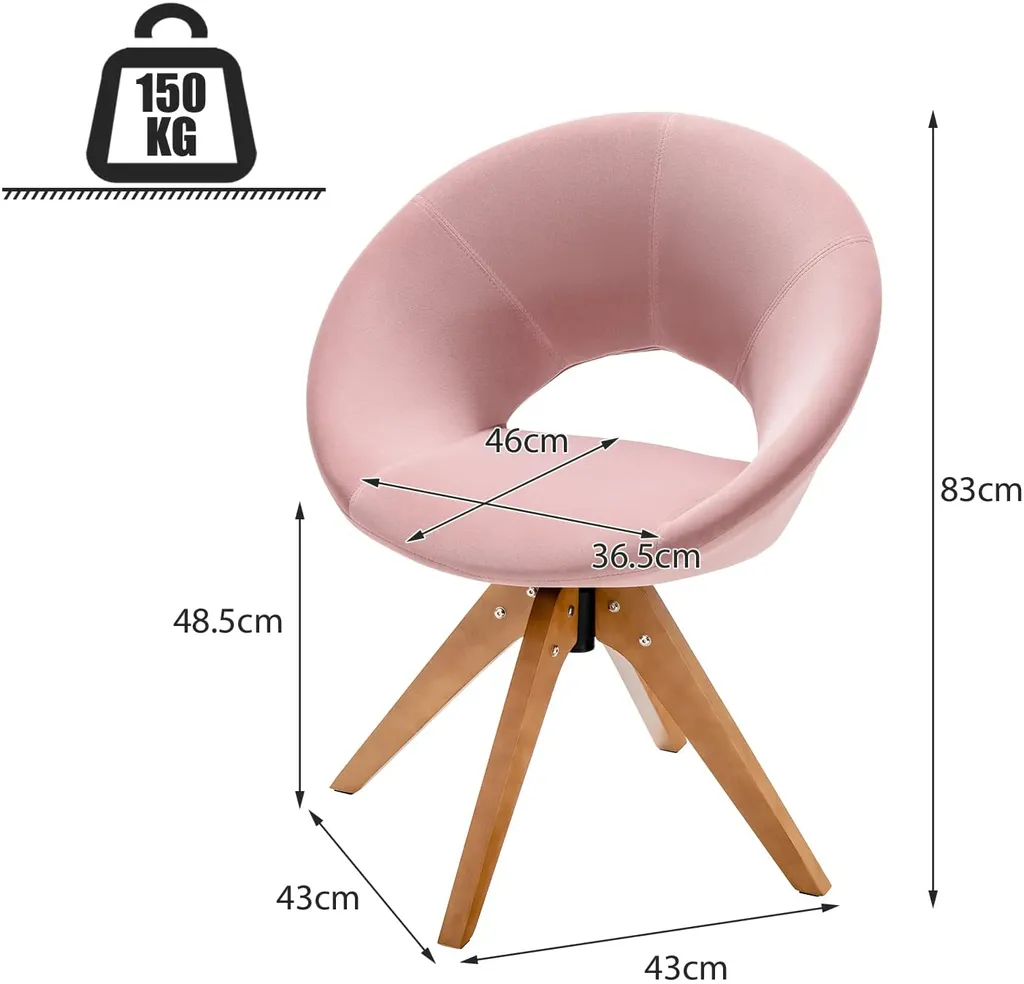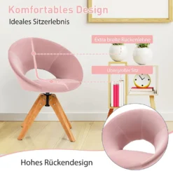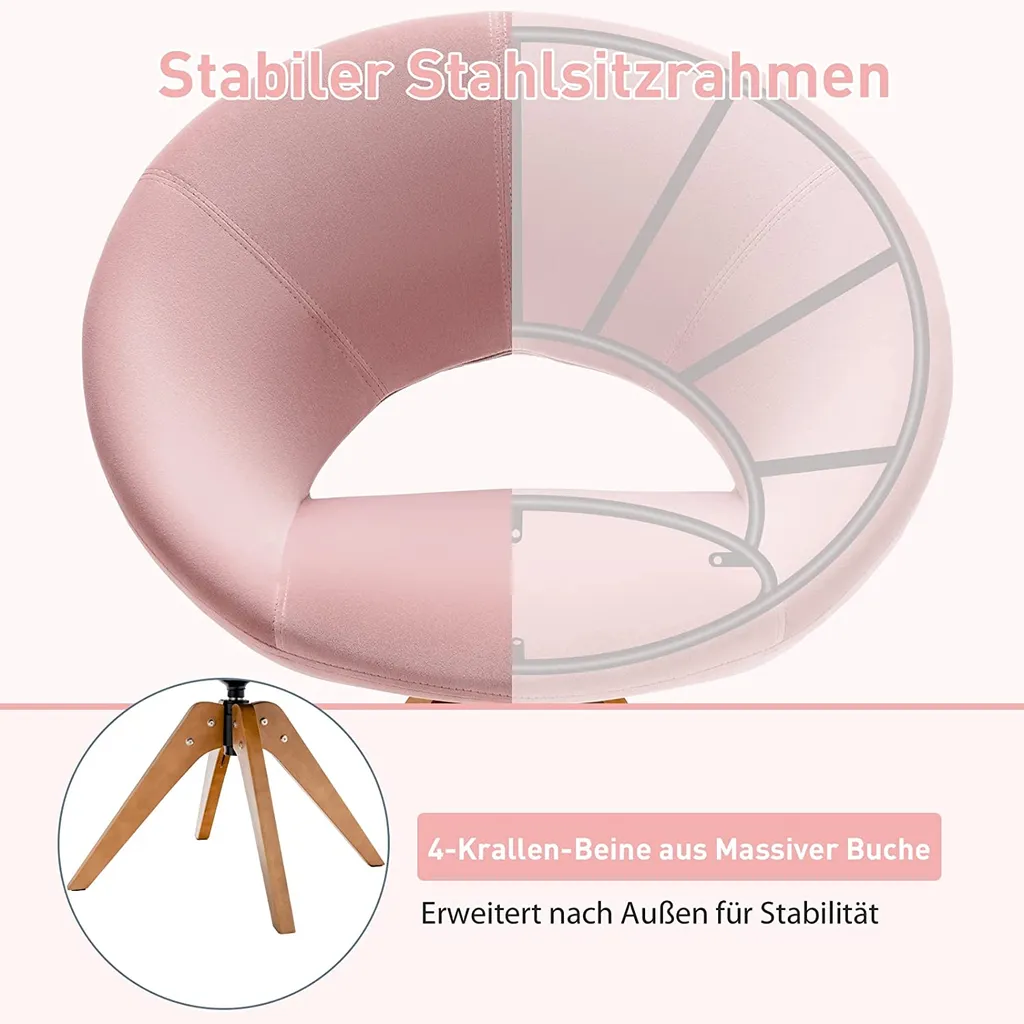 COSTWAY Akzentstuhl 360° Drehbar, Polsterstuhl Mit Massiven Holzbeinen, Esszimmerstuhl Bis 150kg Belastbar, Samt Drehsessel (Rosa)