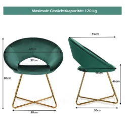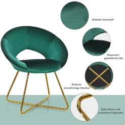 COSTWAY Polstersessel Mit Metallbeinen, Schminktisch Stuhl Bis 120kg Belastbar, Wohnzimmerstuhl Smat, Konferenzstuhl, Besucherstuhl (Dunkelgrün)