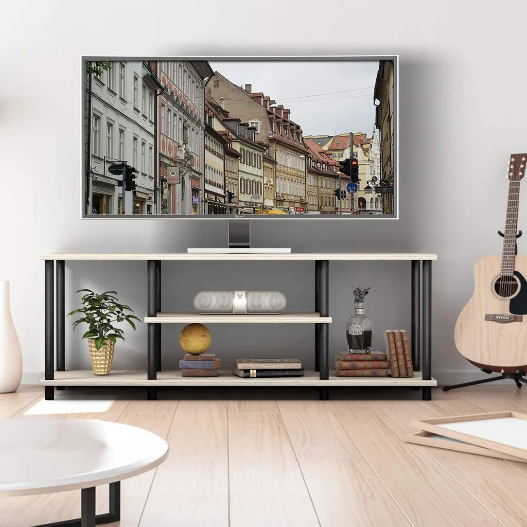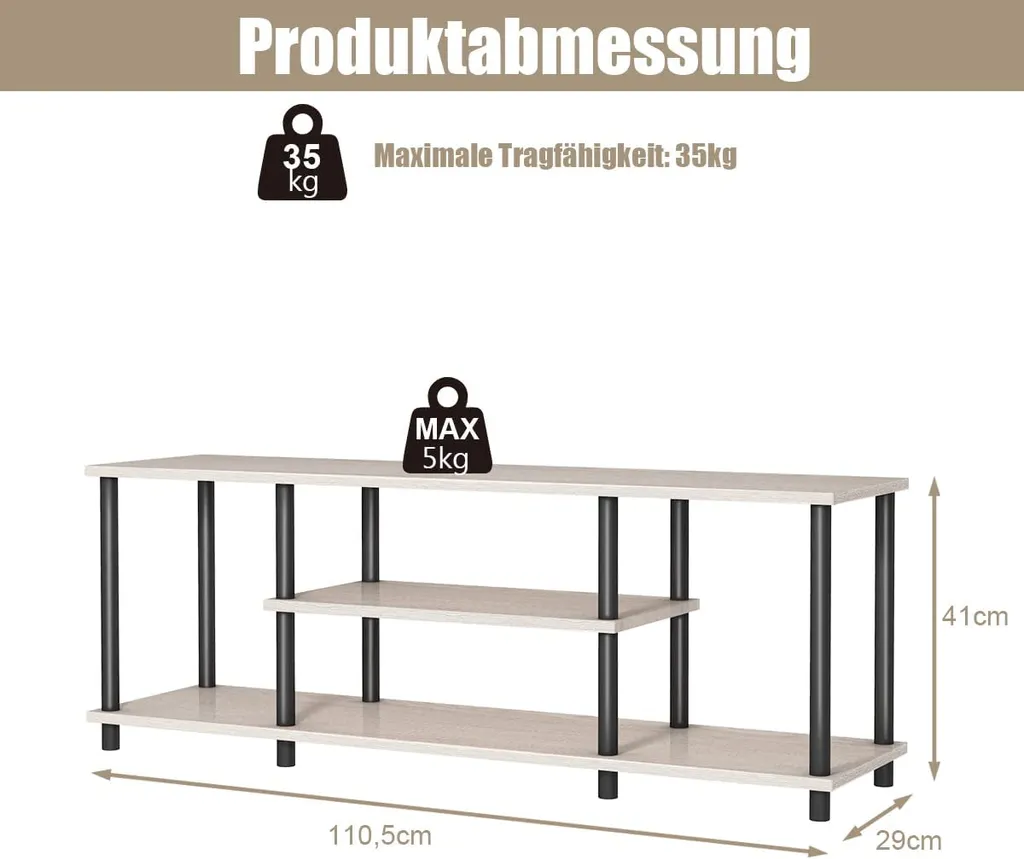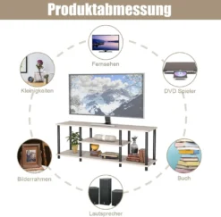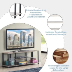 COSTWAY TV-Schrank Fernsehschrank TV-Regal Mit Metallrahmen, Fernsehtisch Wohnzimmerschrank Küchenschrank 110cm Breit Sideboard Für Fernseher (Grau)