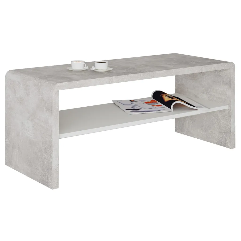 Couchtisch Fernsehtisch Lowboard LENNI, In Betonoptik, Mit Ablagefach In Weiß, 100 X 40 X 40 Cm