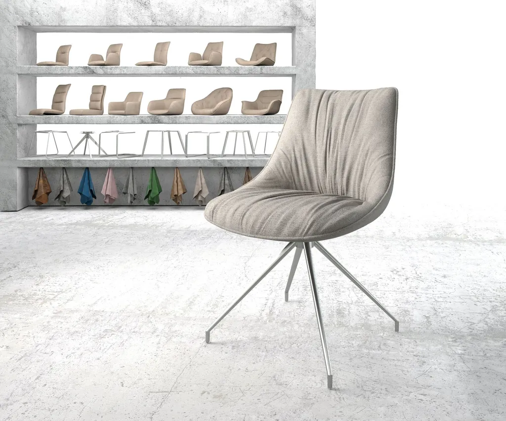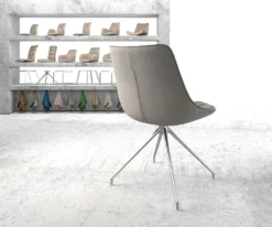 DELIFE Drehstuhl Elda-Flex Stripes Hellgrau Kreuzgestell Konisch Edelstahl 180° Drehbar