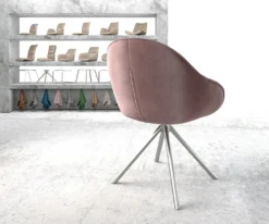 DELIFE Drehstuhl Gaio-Flex Mit Armlehnen Samt Rosé Kreuzgestell Rund Edelstahl 180° Drehbar