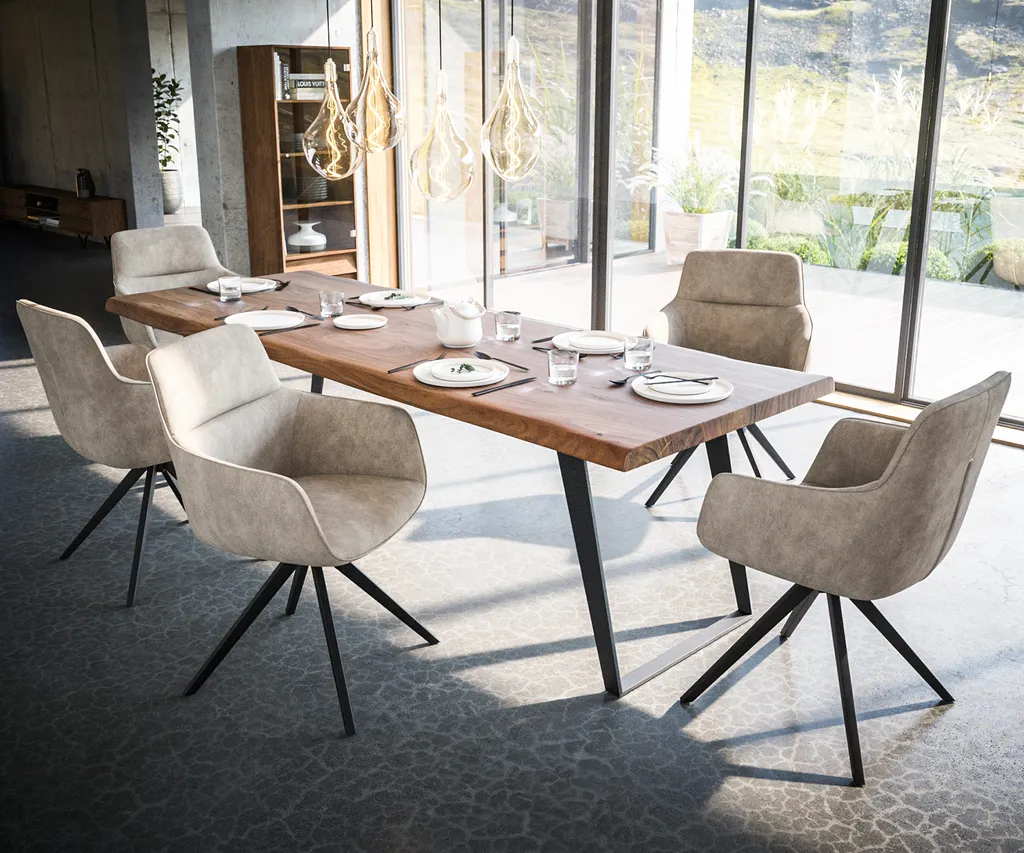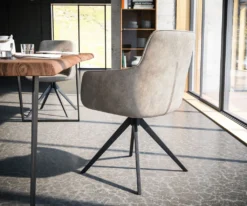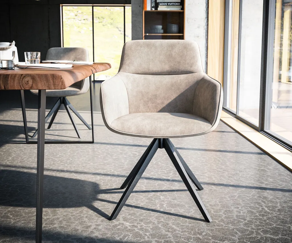 DELIFE Drehstuhl Pejo-Flex Mit Armlehnen Taupe Vintage Kreuzgestell Kantig Schwarz 180° Drehbar