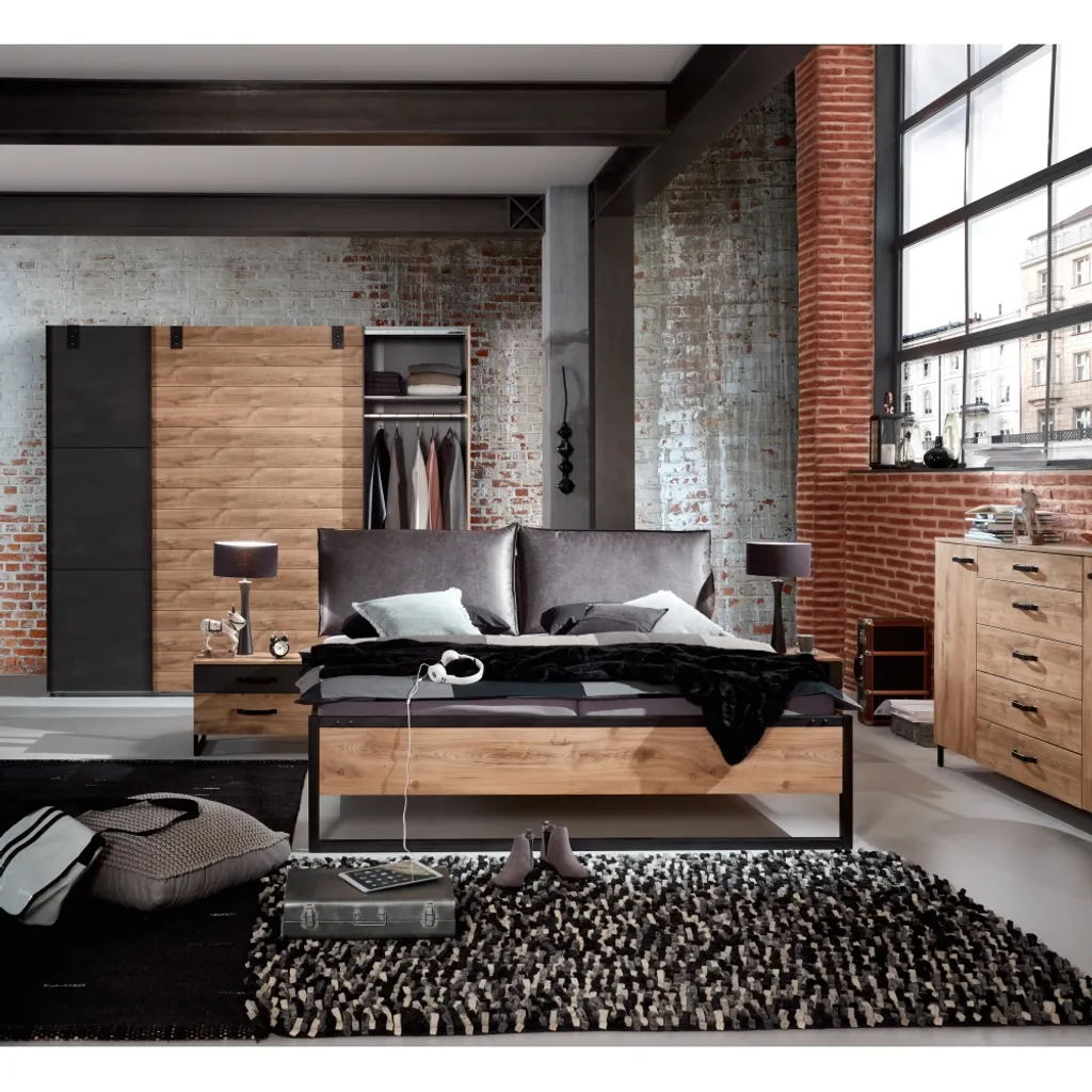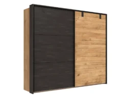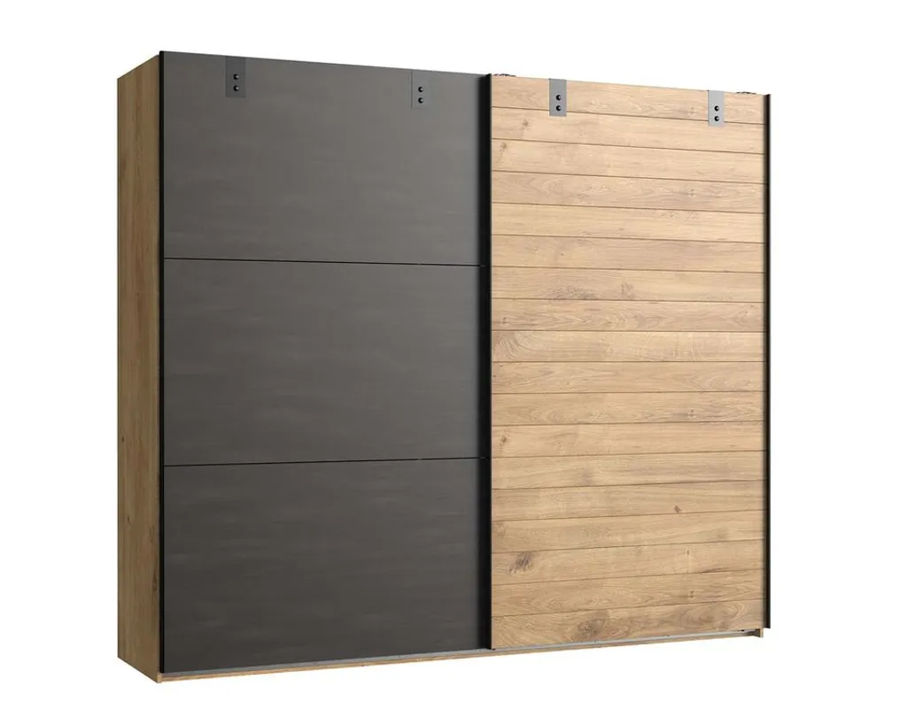 Detroit Schwebetürenschrank Plankeneiche / Schwarz, Passepartout (Rahmen):ohne Passepartout