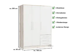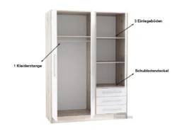 Drehtürenschrank Kleiderschrank JUPITER Weiß – Sandeiche 145 Cm 3 – Türig – Die Möbelfundgrube