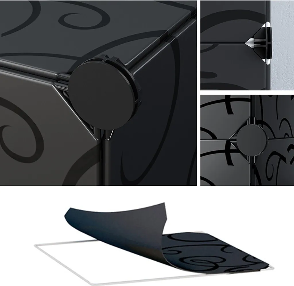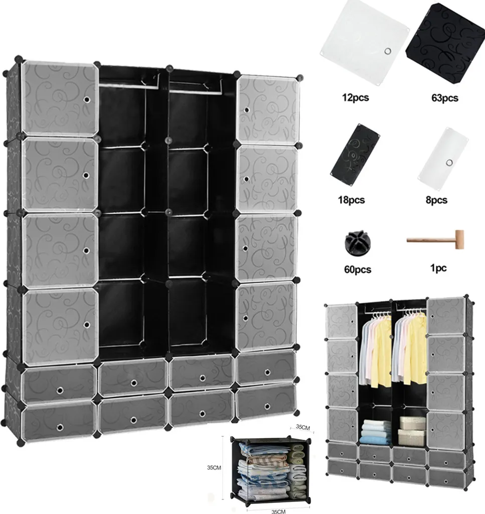 EINFEBEN 16 Wuerfel Regalsystem Kleiderschrank Kleiderschränke DIY Garderobenschrank Schwarz Kunststoff Aufbewahrung Garderobe Fuer Schlafzimmer Mit Tueren 180 * 142 * 37CM