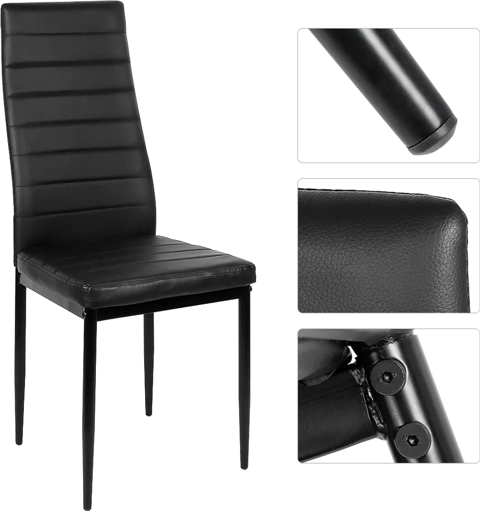 | Zusätzliche Varianten | Esszimmerstühle 4-er SET, Kunstleder Schwarz, Esszimmerstühle 6-er SET, Kunstleder Schwarz, Esszimmerstühle 8-er SET, Kunstleder Schwarz |
