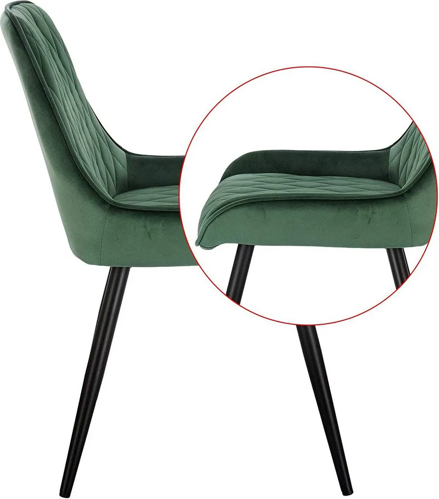 EUGAD 2er Set Esszimmerstühle Mit Armlehne Samt Küchenstühle Polsterstuhl Esszimmerstuhl Mit Metallbeine Belastbar Bis 100kg, Dunkelgrün