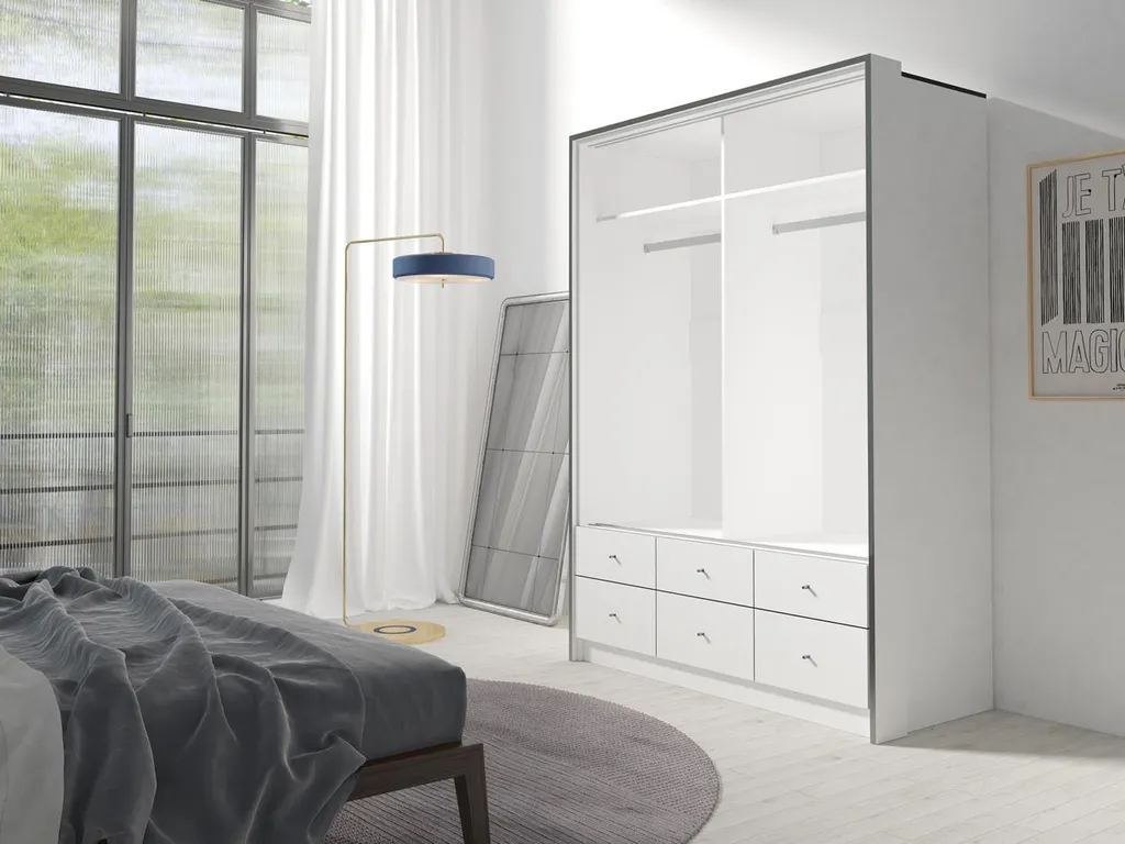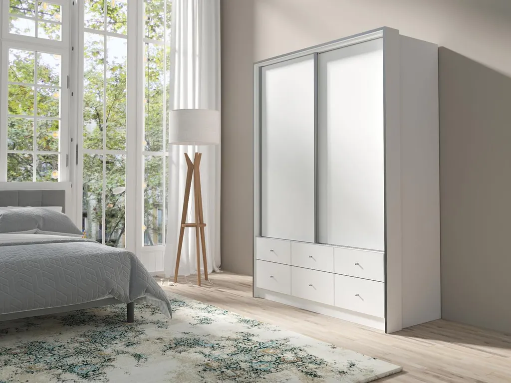 FURNIX Kleiderschrank POLNEA Mit Schiebetüren Und 6 Schubladen Weiß