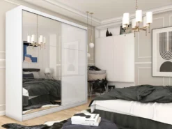 FURNIX Kleiderschrank WINONA 200 Schrank Schiebetüren Lacobel Spiegeltür Weiß