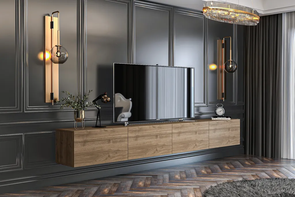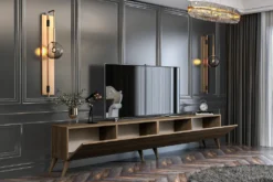 Givayo Möbel Milano Walnuss Farbe Fernsehtisch Tv Schrank Lowboard Sideboard
