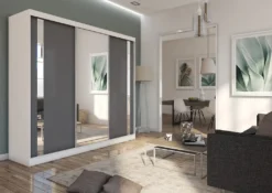 Grece – Flurschrank – Kleiderschrank Mit Spiegel – Schwebetürenschrank – Wardrobe – 240 Cm Grau