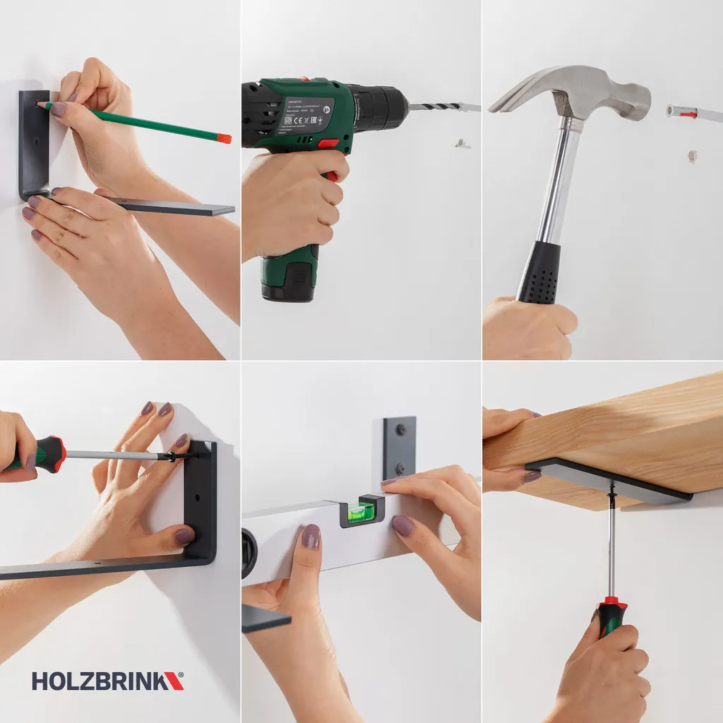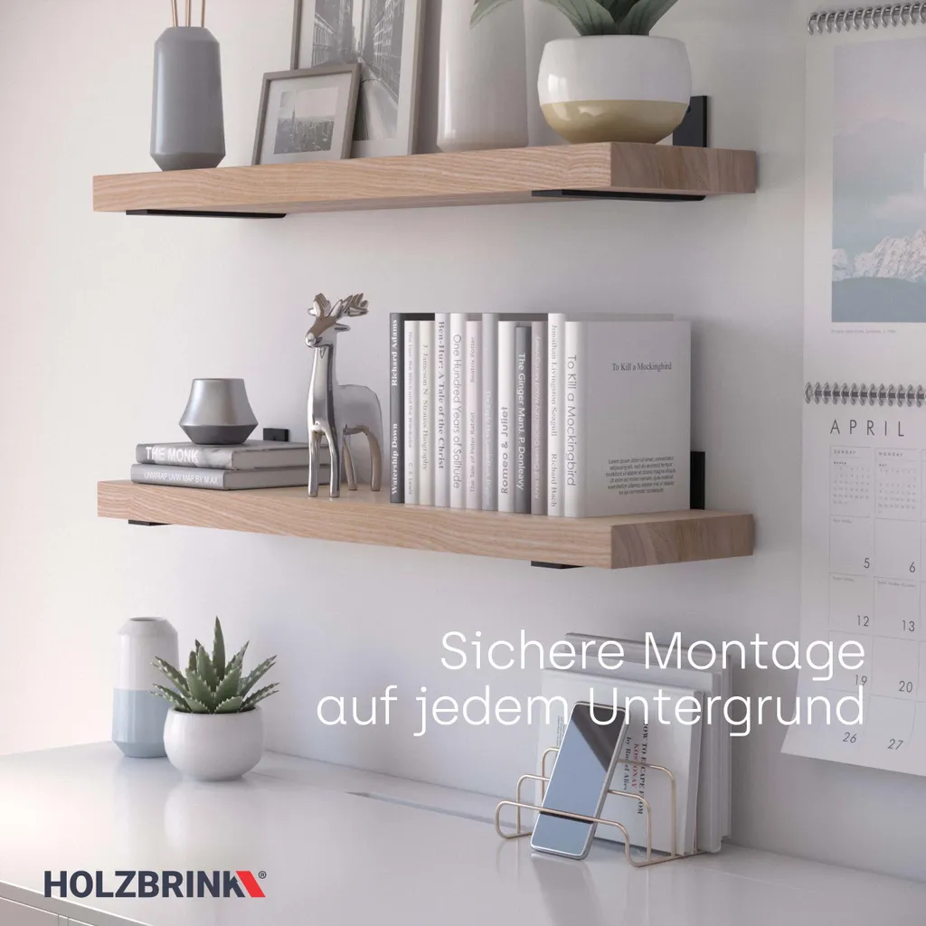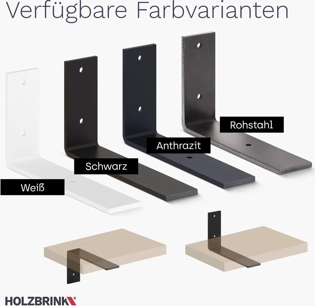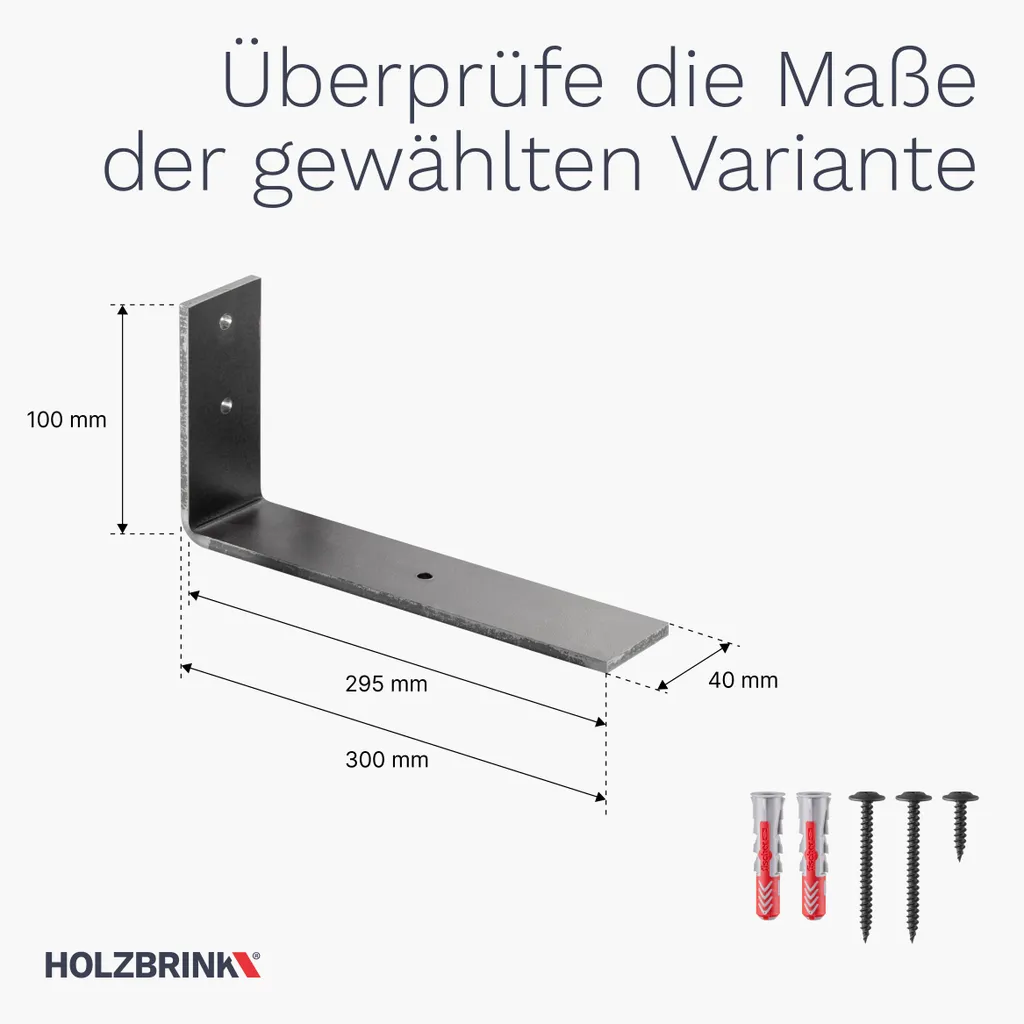 HOLZBRINK Regalträger Metall Regalhalter Für Wandregal, Regalwinkel, Rohstahl Mit Klarlack 300x100x40 Mm, 1 Stück, HLR-L-300-0000