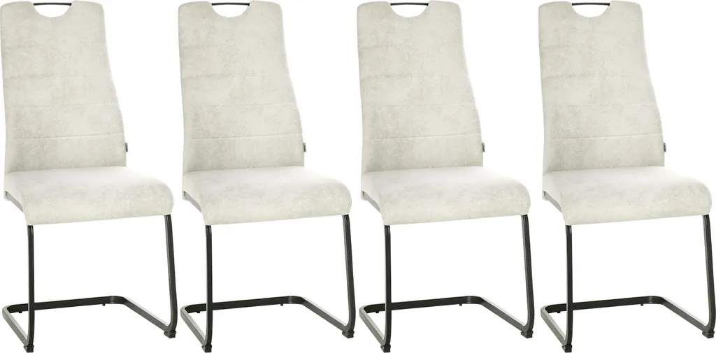 HOMCOM 4er Set Freischwinger Esszimmerstühle Stuhl Küchenstühle Mit Griffmulde Und Metallgestell Schwingstühle Für Esszimmer Modernes Design Polyester Stahl Beige 44 X 58 X 99 Cm
