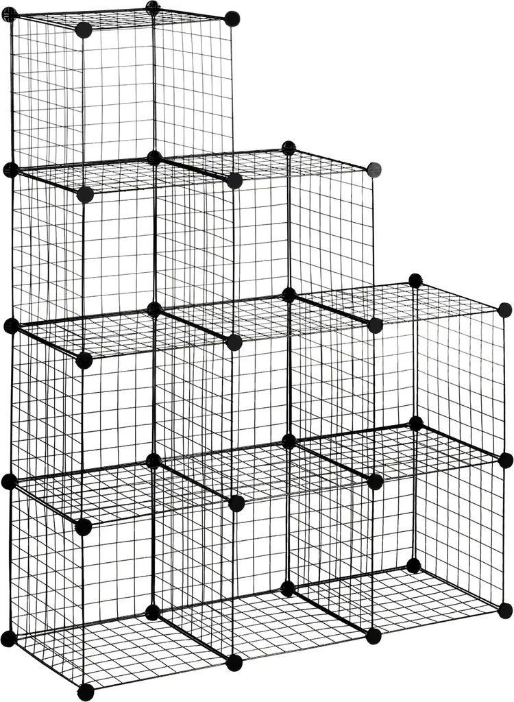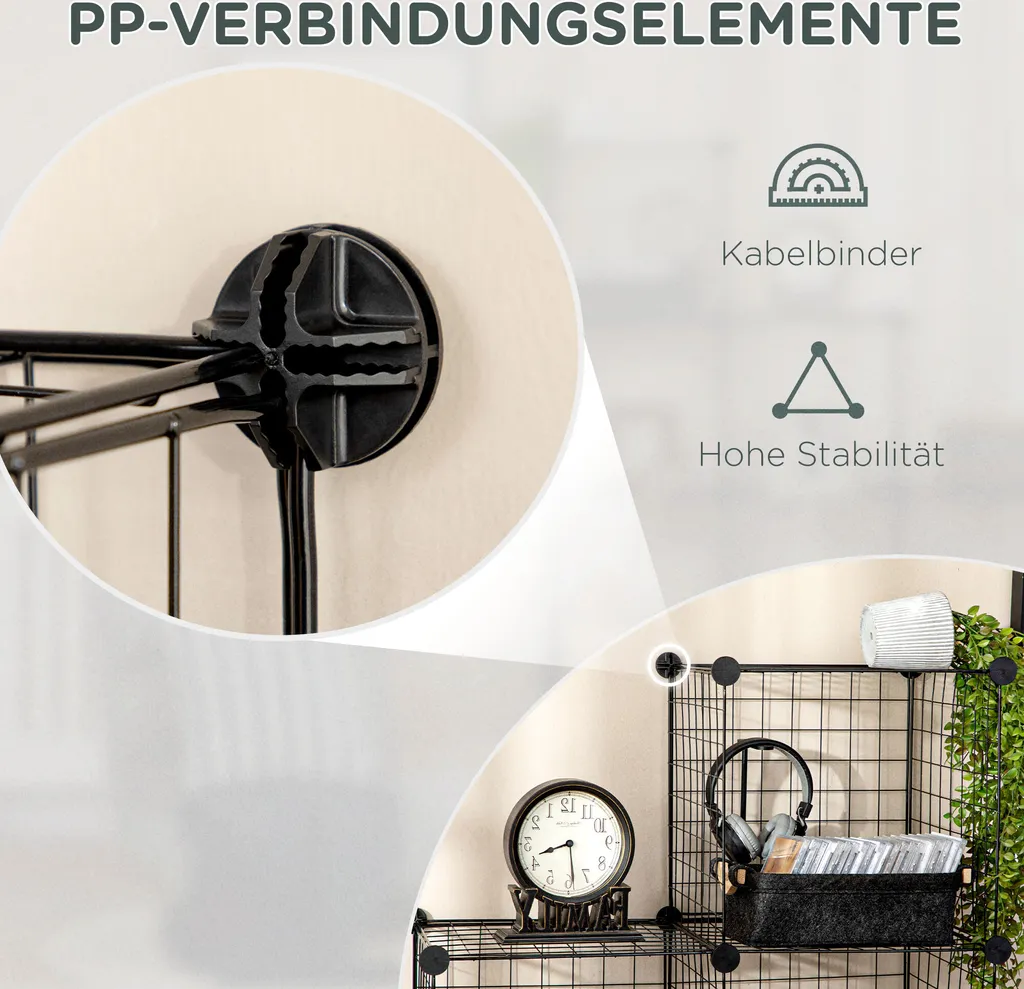 HOMCOM Regalsystem, Steckregal Aus Stahldraht, DIY Würfelregal, 9 Fächer, Drahtgitter, Schuhregal, Stufenregal Für Wohnzimmer, Kinderzimmer, Schlafzimmer, Schwarz, 35 X 35 X 35 Cm Je Würfel