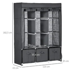HOMCOM Stoffschrank, Kleiderschrank Mit Kleiderstangen Und Schubladen, Faltschrank Mit Reißverschluss, Faltbare Garderobe Für Schlafzimmer, Vliesstoff, Dunkelgrau, 125 X 43 X 162,5 Cm