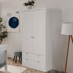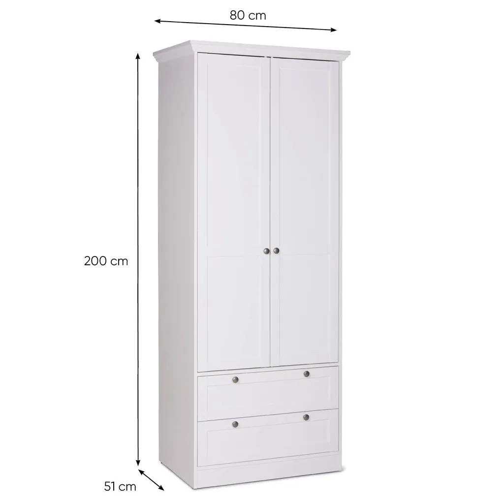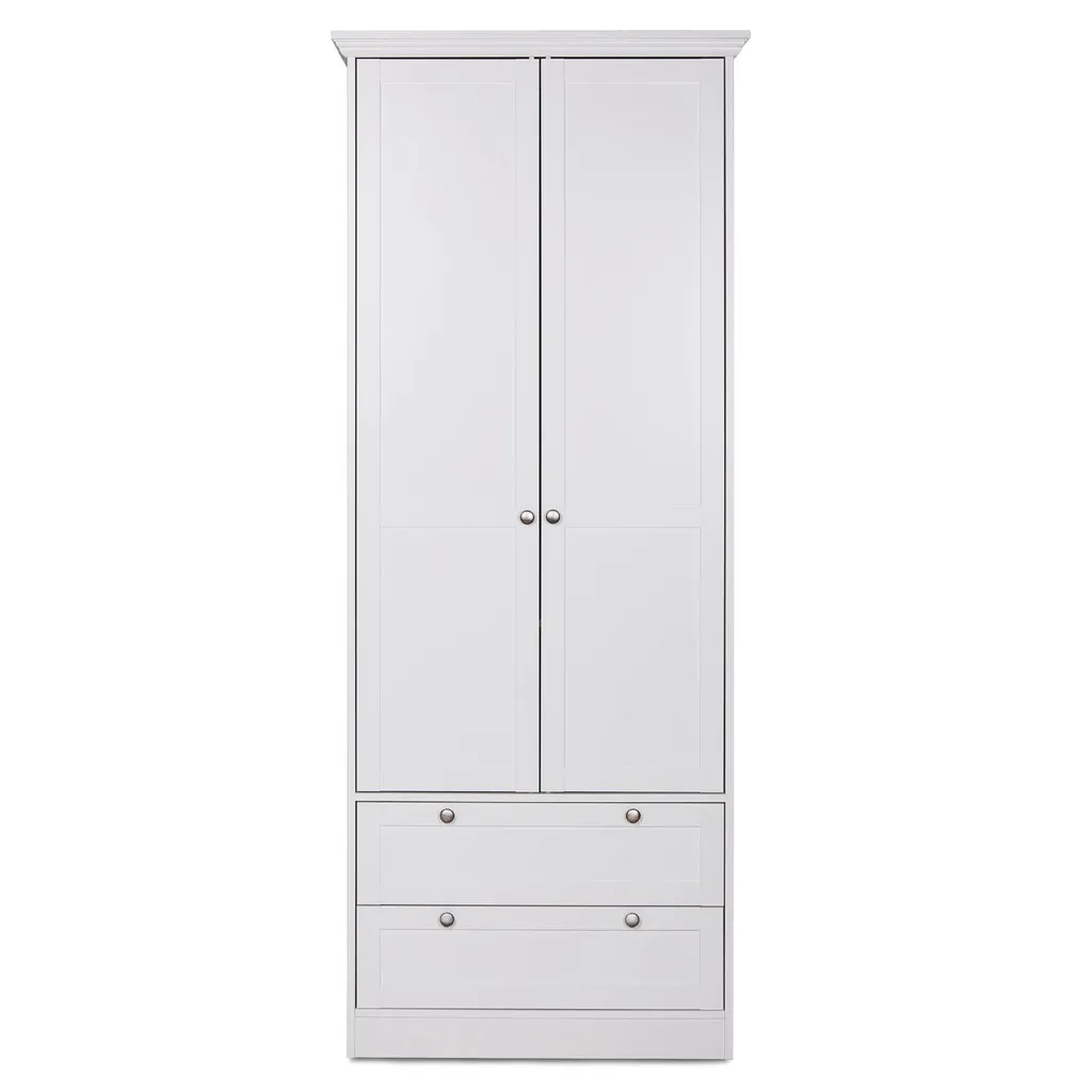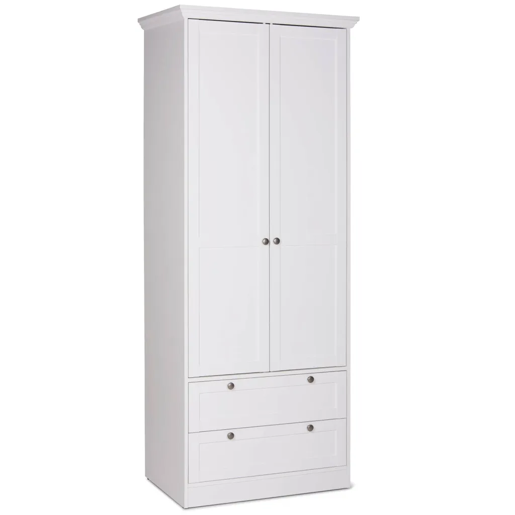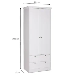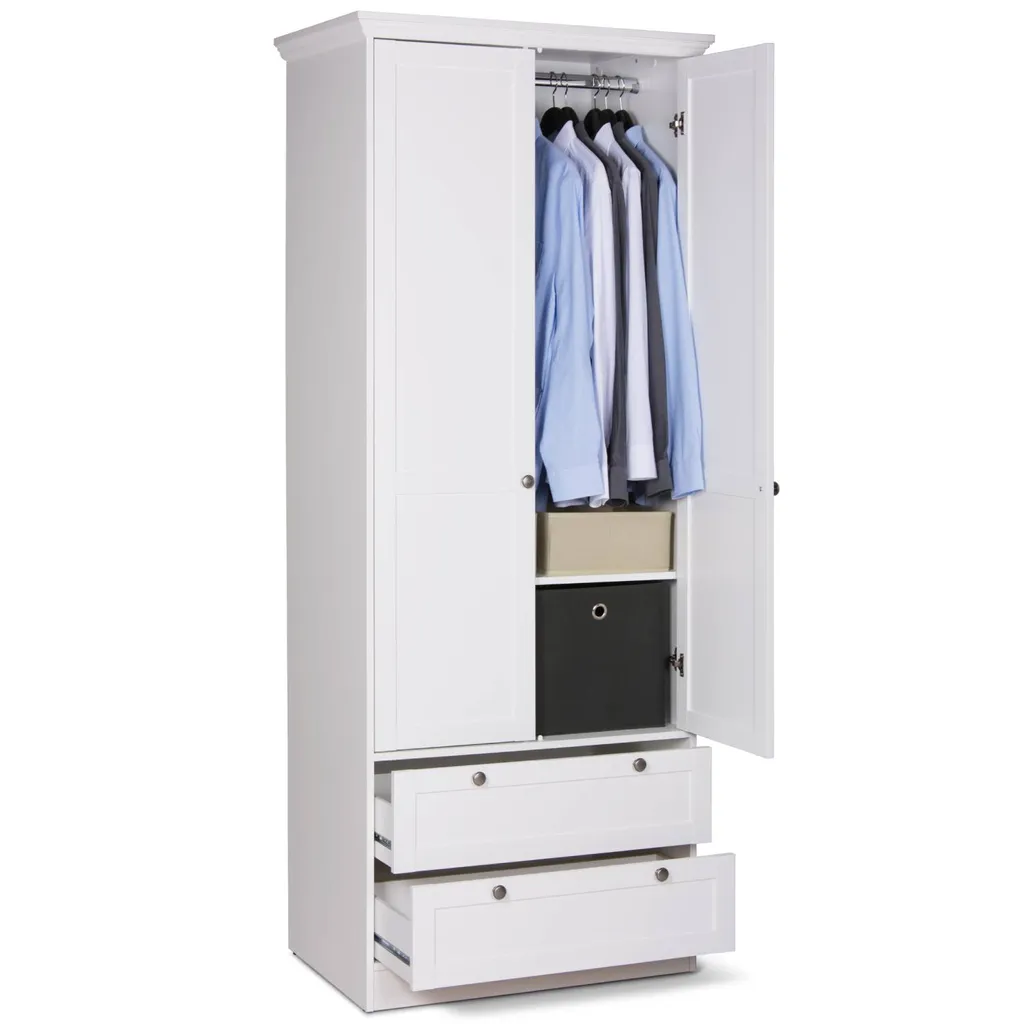 Homestyle4u 2121, Kleiderschrank Weiß Garderobe Holz Schrank Massiv 2 Türen Garderobenschrank Mehrzweckschrank