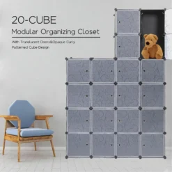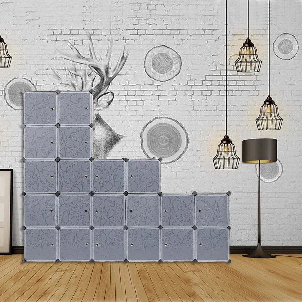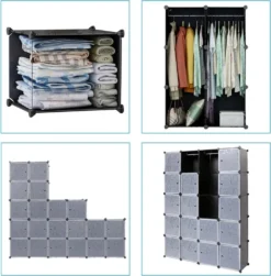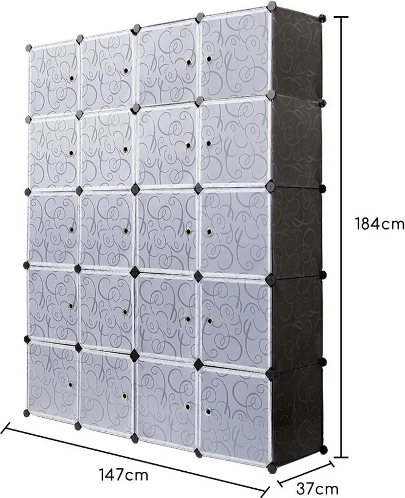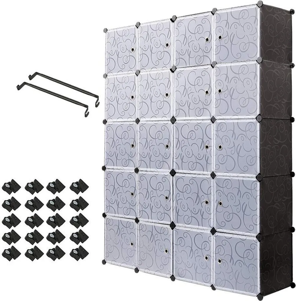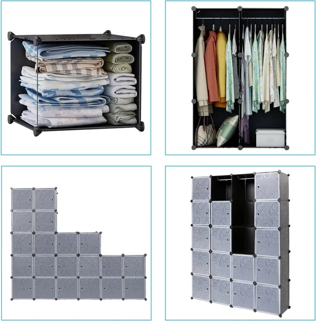 Kleiderschrank, 20 Kubus Kunststoff Kleiderschrank Garderobenschrank, Steckregal Kombischrank,Schrank Regalsystem Mit 2 Kleiderstange, Schwarz