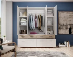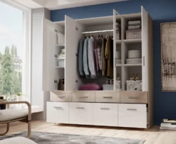 Kleiderschrank „Box“ In Sonoma Eiche / Weiß Mit 8 Schubladen Und 4 Türen. Abmessungen (BxHxT) 180x198x55 Cm