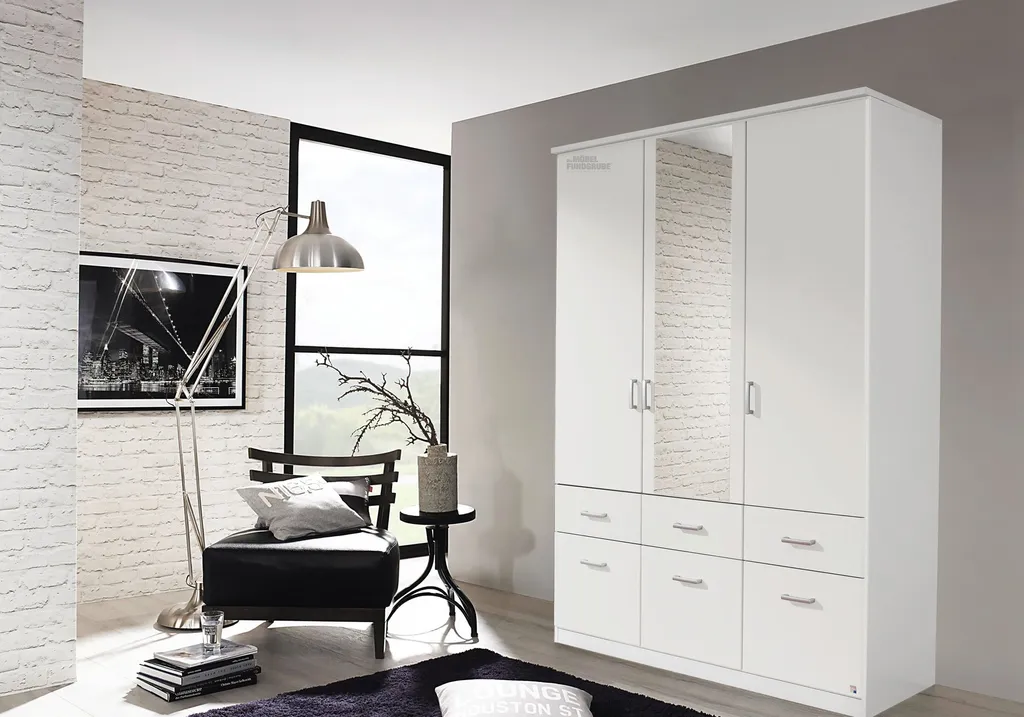 Kleiderschrank BREMEN Drehtürenschrank Mit Spiegel – Weiß 136 Cm – Die Möbelfundgrube