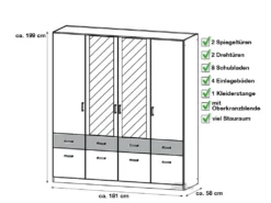 Kleiderschrank BREMEN – EXTRA Drehtürenschrank Mit Spiegel Betonoptik – Weiß 181 Cm – Die Möbelfundgrube