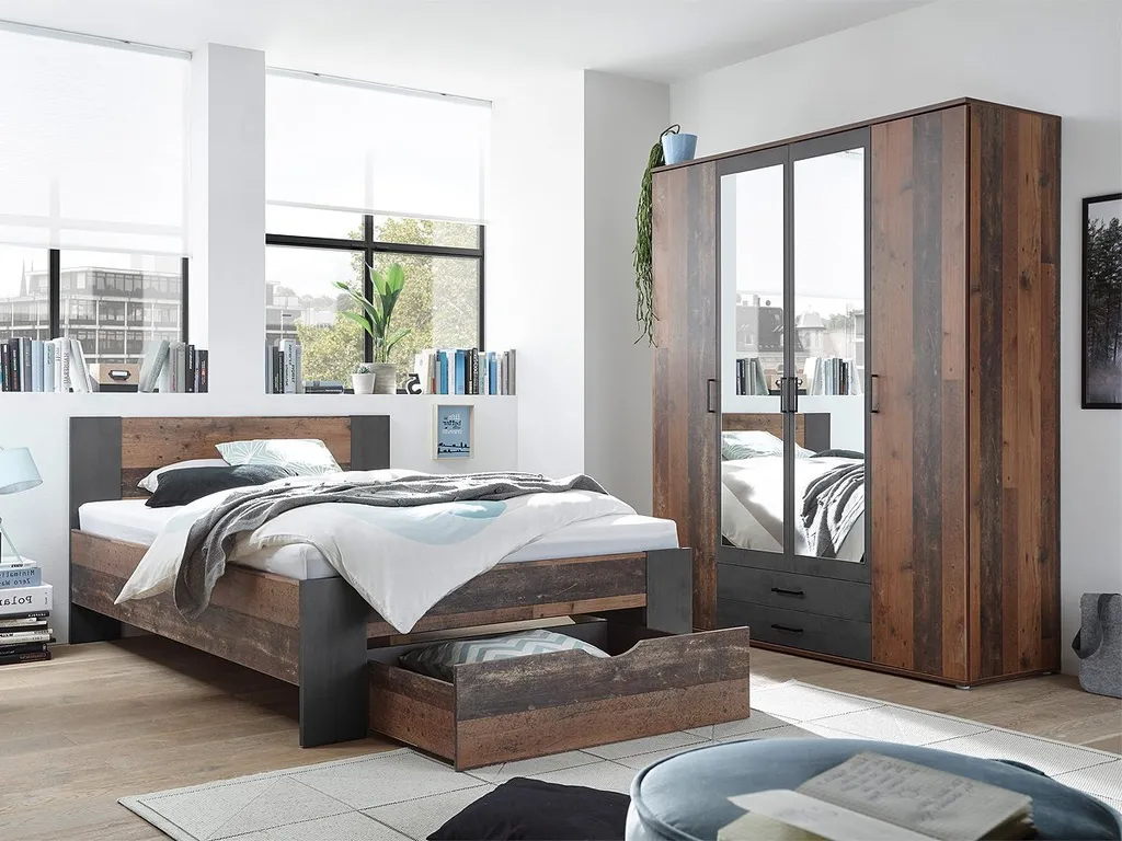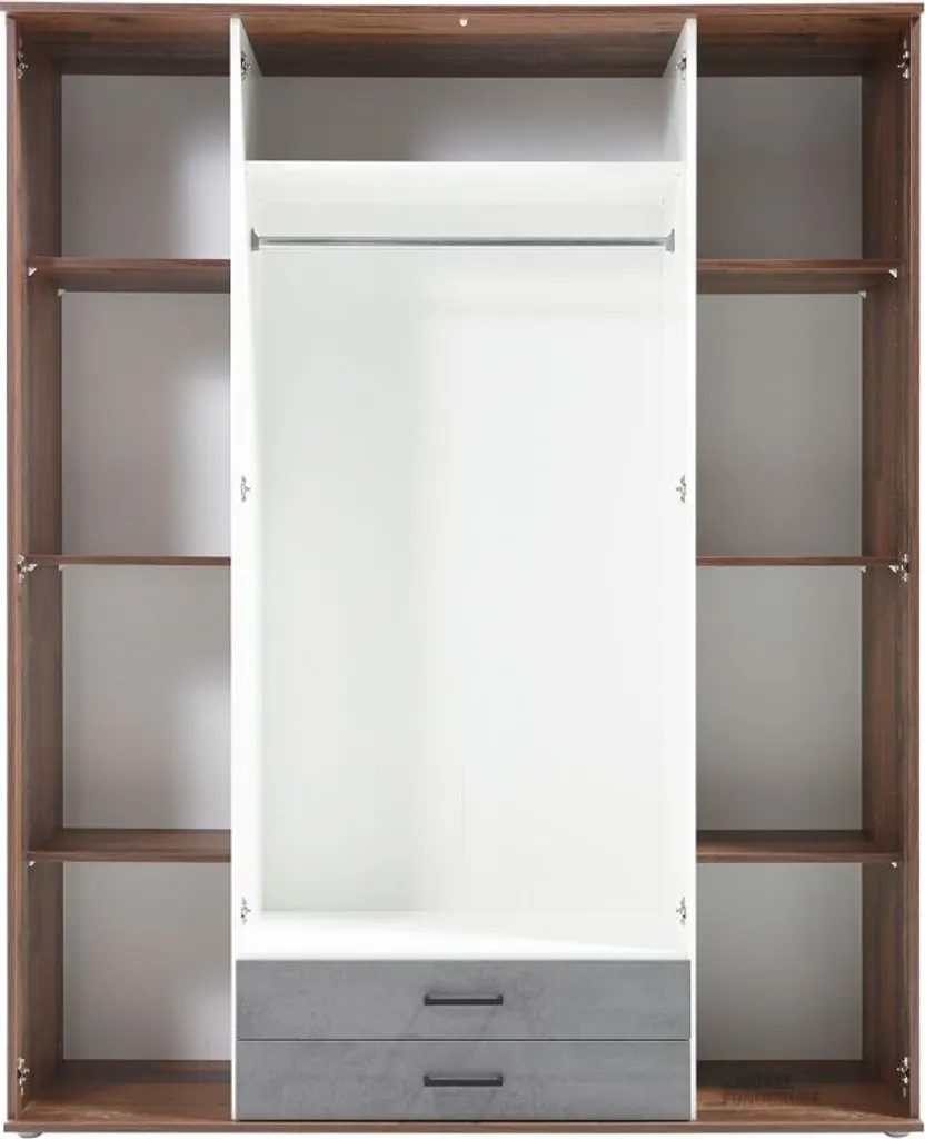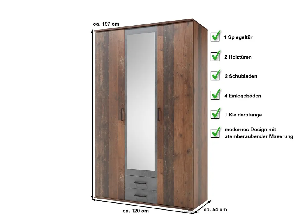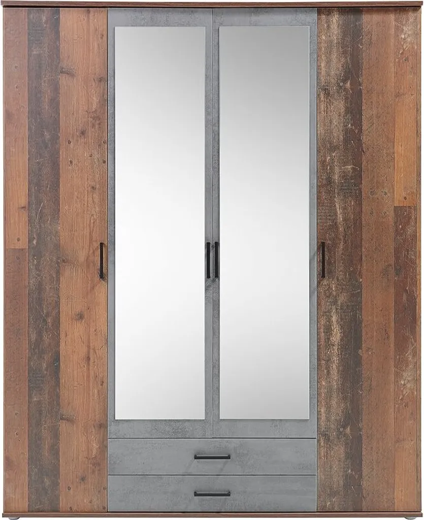 Kleiderschrank Drehtürenschrank CHICAGO – Old Style – Betonoxid – 159 Cm Mit Spiegel – Die Möbelfundgrube