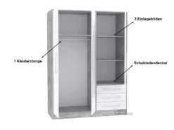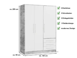 Kleiderschrank Drehtürenschrank JUPITER Betonoptik Weiß 145 Cm – Die Möbelfundgrube