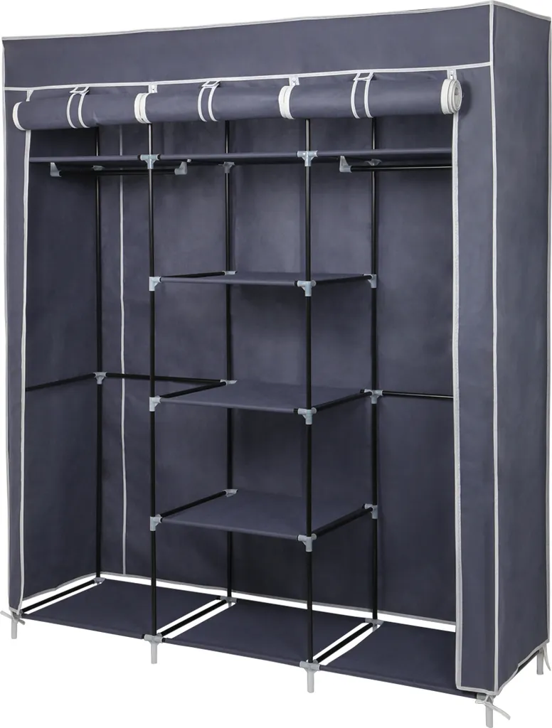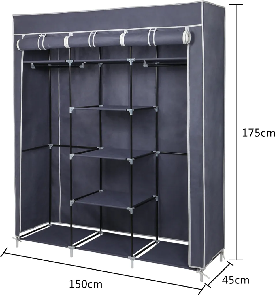 Kleiderschrank Höhe 175cm Stoffschrank Faltschrank Garderobe Mit Kleiderstange 3 Hochrollbaren Türen 175cm*150cm*45cm Graublau