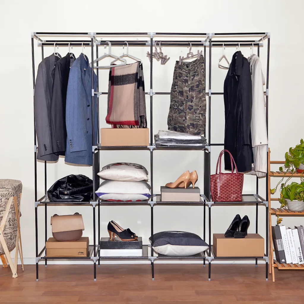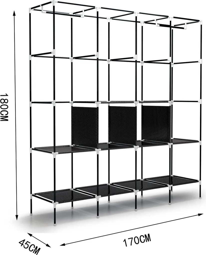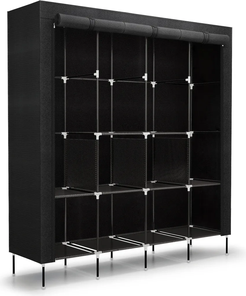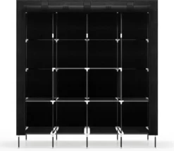 Kleiderschrank Höhe 180cm, Stoffschrank Faltschrank Mit 4 Kleiderstangen Und 2 Taschen, 180cm*170cm*45cm, Schwarz – Meerveil