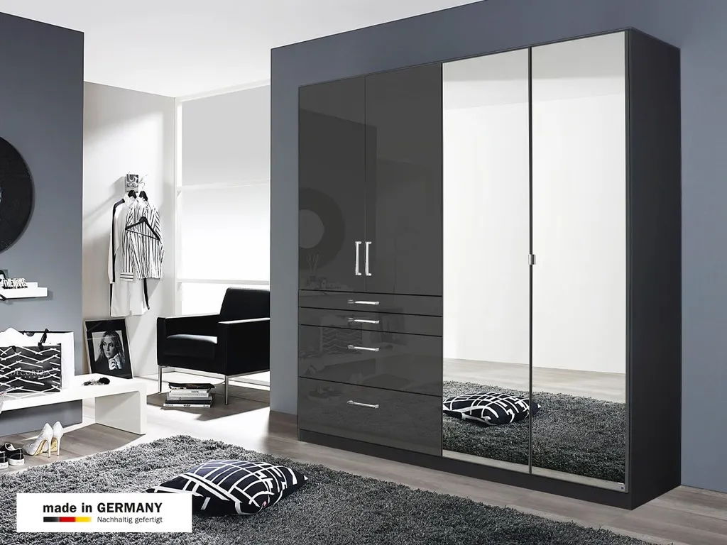 Kleiderschrank HOMBURG Drehtürenschrank Mit Spiegel Grau – Metallic Hochglanz 181 Cm – Die Möbelfundgrube