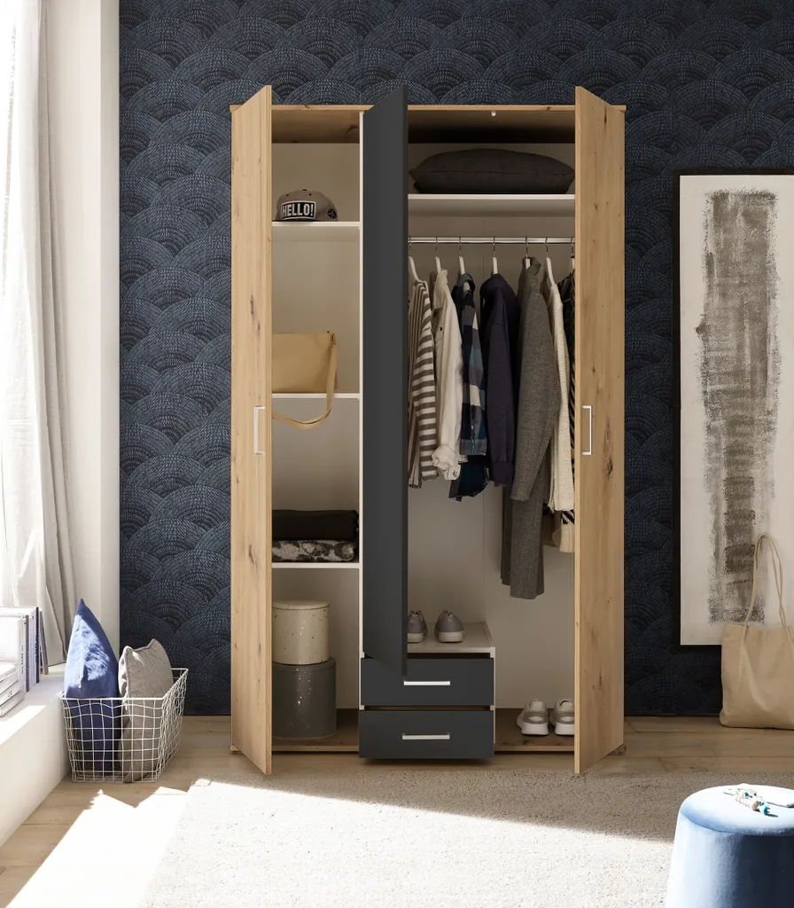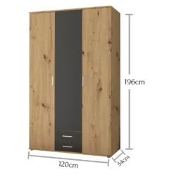 Kleiderschrank „Marburg“ In Artisan Eiche / Graphit Mit 2 Schubladen Und 3 Türen. Abmessungen (BxHxT) 120x196x54 Cm