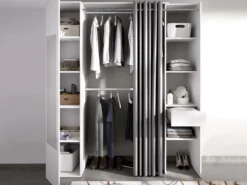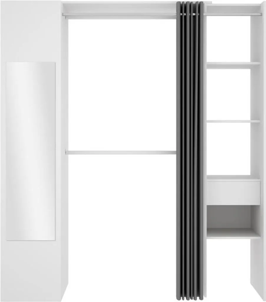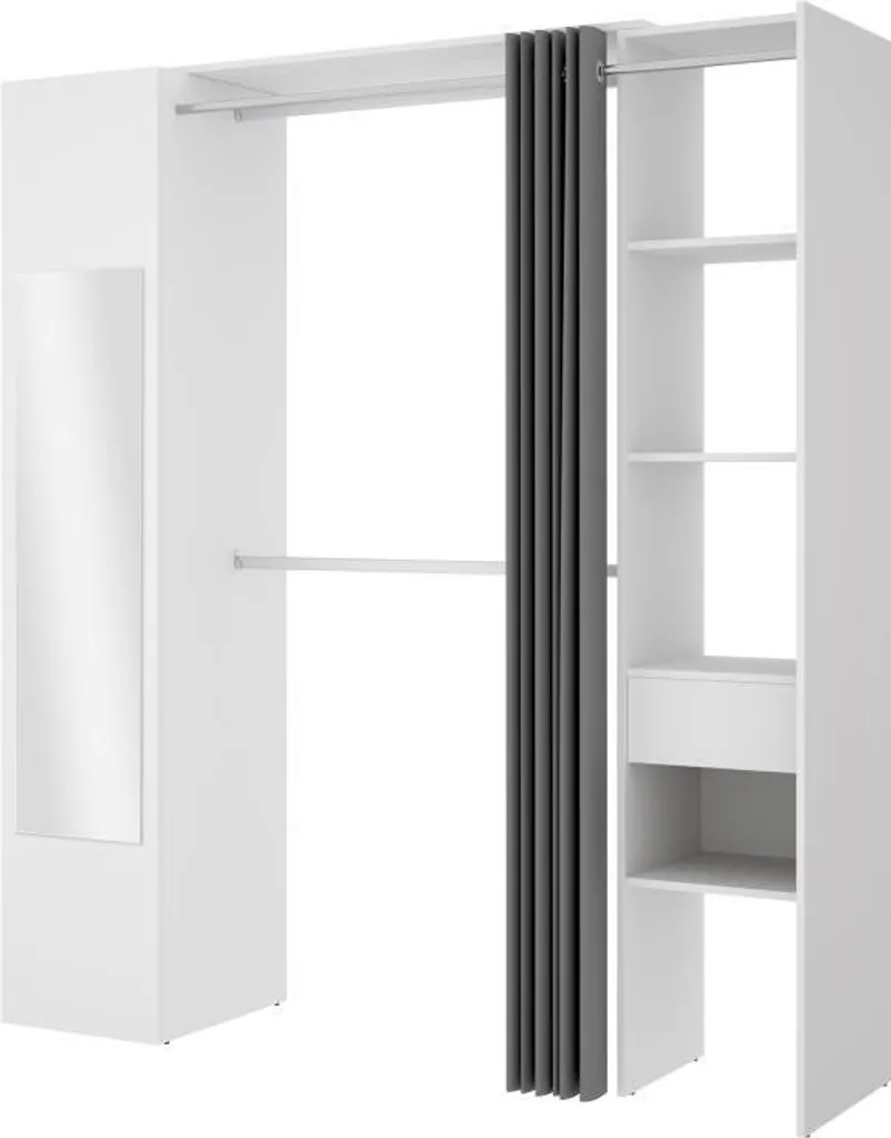 Kleiderschrank Mit Vorhang & 1 Tür + Spiegel – L. 177 Cm – Weiß Und Grau – BERTRAND
