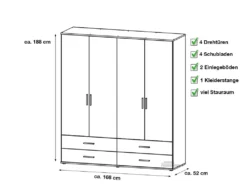 Kleiderschrank RASANT Drehtürenschrank Weiß 168 Cm 4-türig – Die Möbelfundgrube