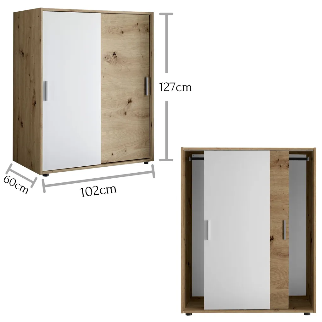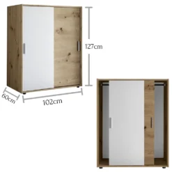 Kleiderschrank Schrank Schiebetürenschrank Kommode Mini-Schrank „Case II“ Artisan Eiche/Weiß