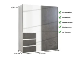 Kleiderschrank Schwebetürenschrank WINN Weiß – Grau 170 Cm 2-türig – Die Möbelfundgrube