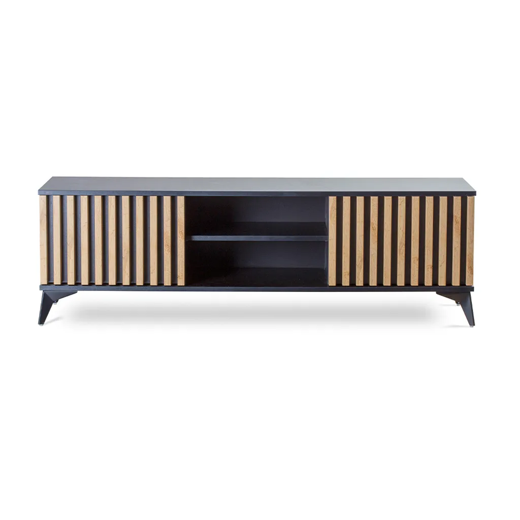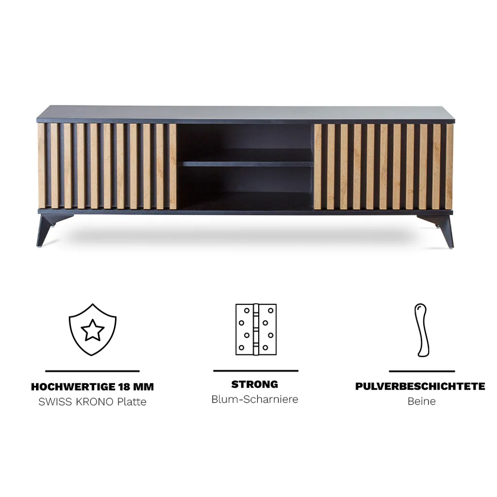 Klemp Fernsehschrank B161 X H51 X T42,2 Cm, Stehend TV-Kommode AblagefÀchern Mit 3D-Fronten Wotan-Eiche