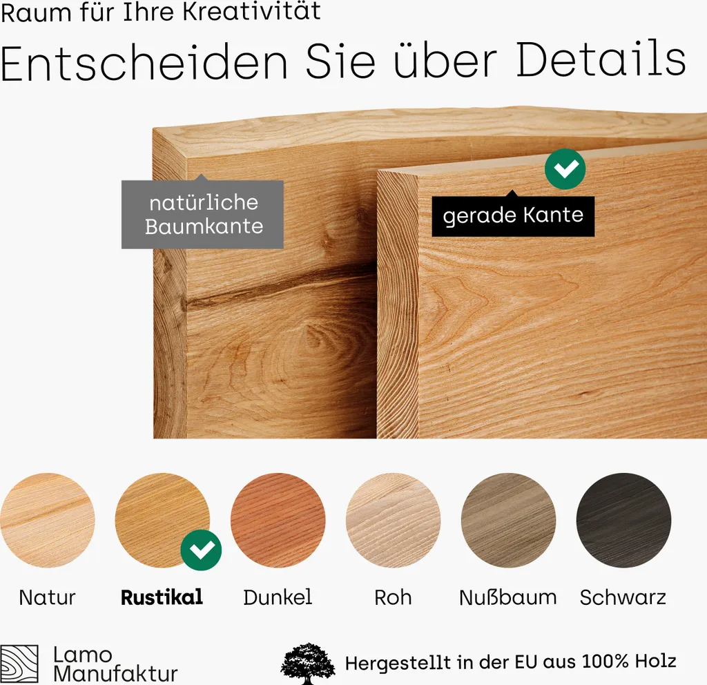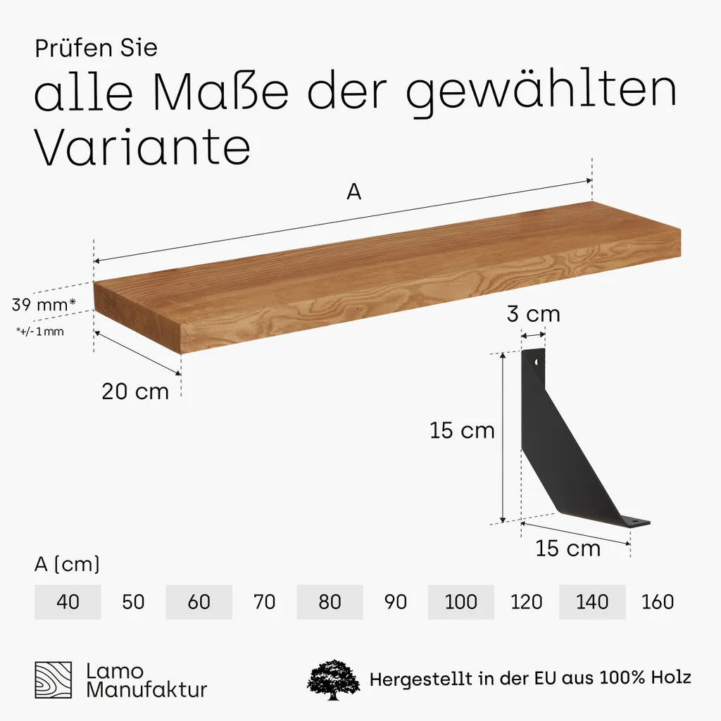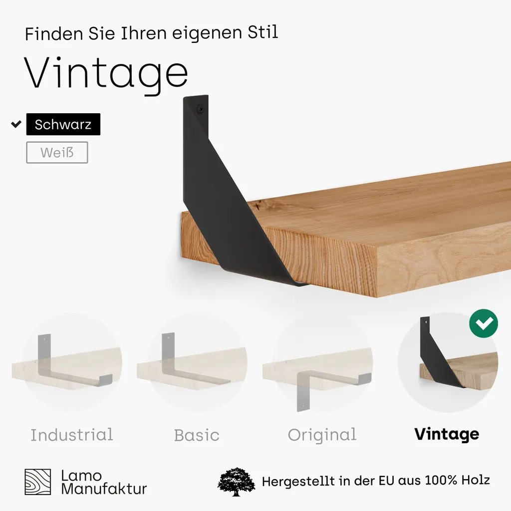 | Zusätzliche Varianten | LAMO Manufaktur Wandregal Holz, Bücherregal, Hängeregal Original, Rustikal / Schwarz 80cm, LWG-01-A-003-80ZS, LAMO Manufaktur Wandregal Holz, Bücherregal, Hängeregal Vintage, Rustikal / Schwarz 80cm, LWG-01-A-003-80VS |