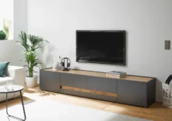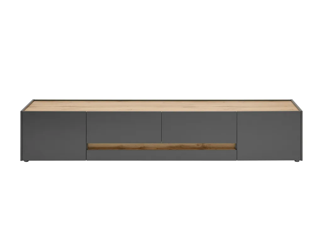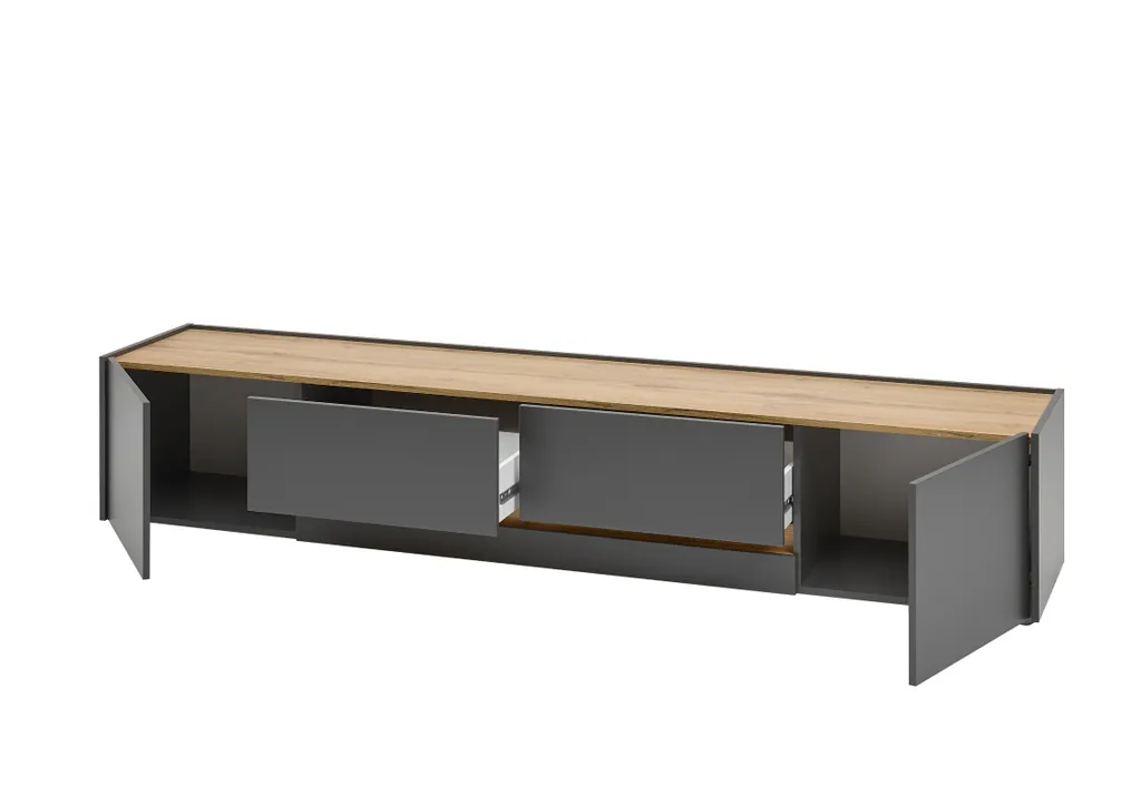 Lowboard 220×40 Cm Eiche Anthrazit 2-türig + 2x Schubkästen BOSTON
