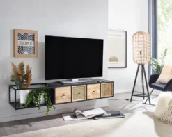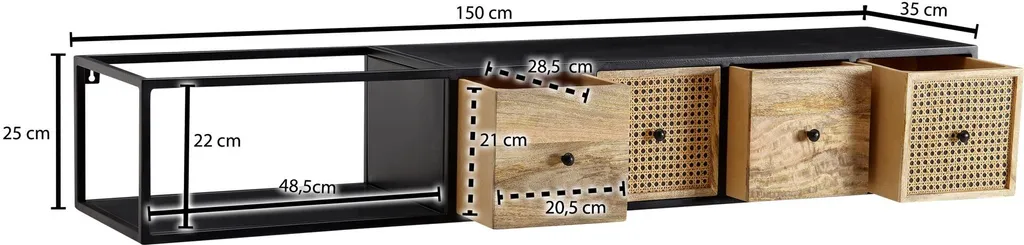 Lowboard Hängend Mango Massivholz / Metall 150x25x35 Cm TV-Schrank Schwarz | Design Fernsehtisch Modern | Fernsehschrank Wand | TV-Kommode Fernsehkommode Zum Aufhängen